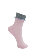 Die Aviana Socke ist eine weiche und leichte Socke mit kleinen Punkten und einem kontrastierenden Rippenrand mit einem süßen Wellenrand. Perfekt, um Ihren Alltagslook aufzupeppen und Ihrem Outfit ein kleines, hübsches Detail zu verleihen.