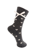 Diese Socken sind nicht nur bequem, sondern mit ihrem eingestrickten Herzmuster und der aufgenähten femininen Schleife auch noch äußerst stylisch.