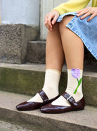 Süße und feminine Socken mit elegantem Blumenmotiv. Die weiche und bequeme Qualität sorgt für eine gute Passform, während das schlichte, aber charmante Design Ihrer Alltagsgarderobe eine stilvolle Note verleiht.