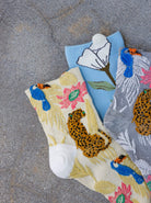 Süße und feminine Socken mit elegantem Blumenmotiv. Die weiche und bequeme Qualität sorgt für eine gute Passform, während das schlichte, aber charmante Design Ihrer Alltagsgarderobe eine stilvolle Note verleiht.