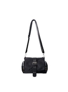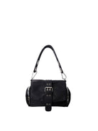 Glänzende Crossover-Tasche mit Außentasche und Innentasche mit Reißverschluss. Die Tasche hat silberfarbene Reißverschlüsse und einen schwarzen, abnehmbaren und verstellbaren Tragegurt. Perfekt für den praktischen und stilvollen Alltagsgebrauch, bei dem Funktionalität auf modernes Design trifft.