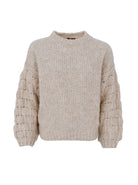 Unser Aurora-Strickpullover ist ein weicher und dicker Strickpullover, der Sie dank seiner Wollmischung an kalten Wintertagen sicher wärmt. Der Strick ist einfarbig und hat am Körper regelmäßige Linksmaschen, während die Ärmel in einem schönen Quadratmuster gestrickt sind.