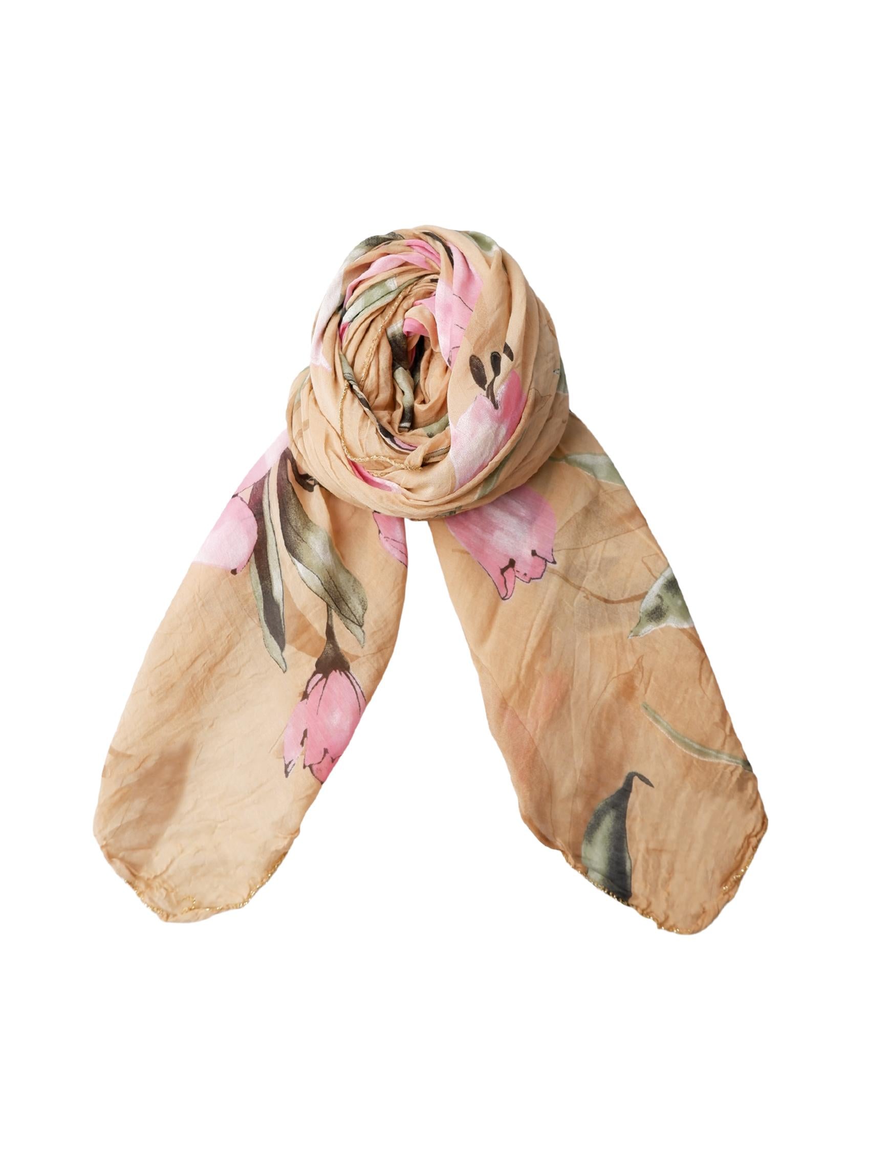 Leichter und luftiger Baumwoll-Seidenschal mit wunderschönem Blumenmuster. Der weiche Stoff sorgt für ein angenehmes Tragegefühl, während das feminine Design Ihrem Outfit eine romantische und elegante Note verleiht.