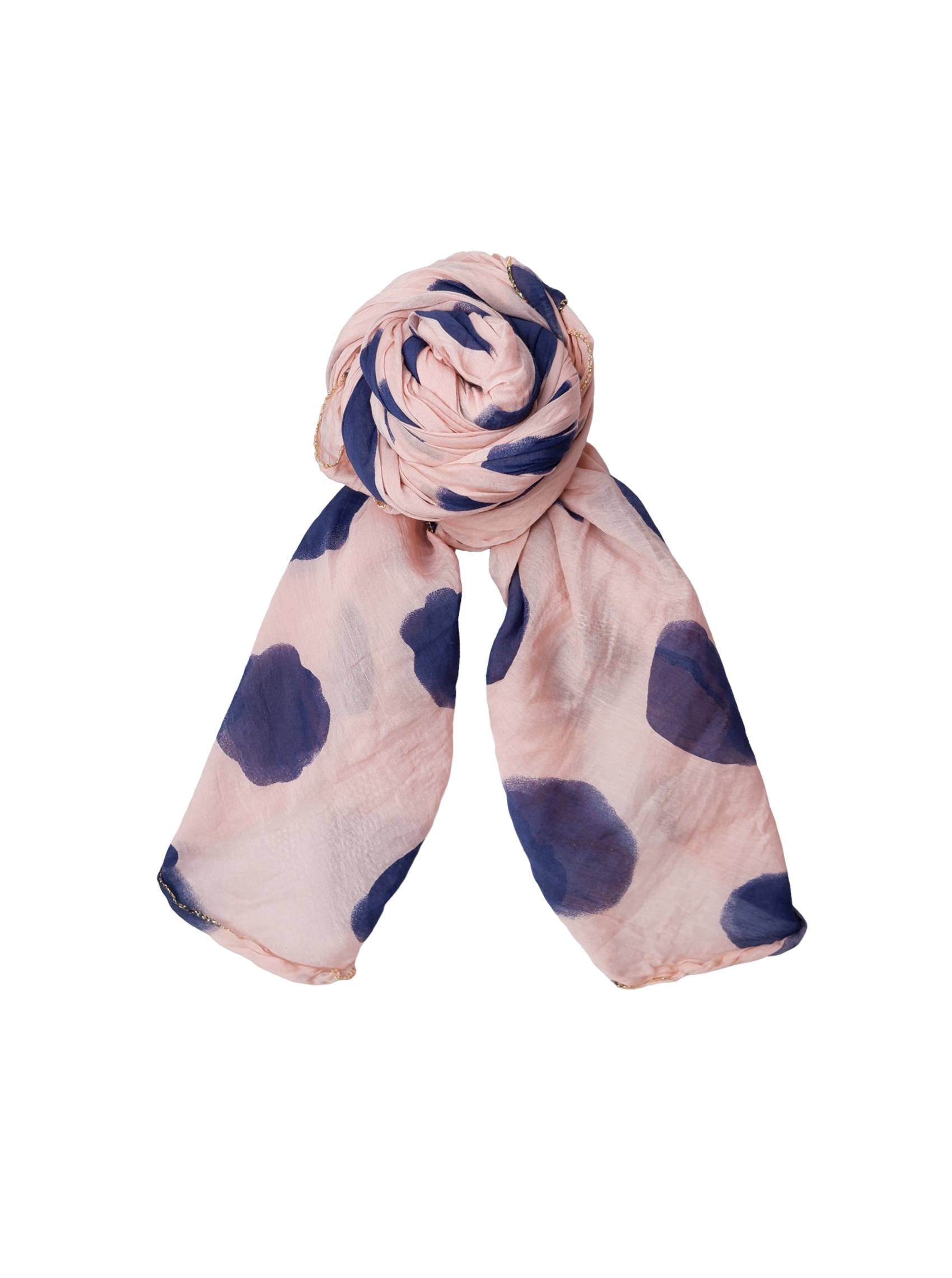 Unser Mimi-Schal ist ein wunderschöner Schal aus einer leichten und weichen Mischung aus Baumwolle und Seide. Der Schal ist mit einem eleganten Punktmuster und feinen Goldrändern gestaltet, die ihm einen exklusiven Look verleihen.
