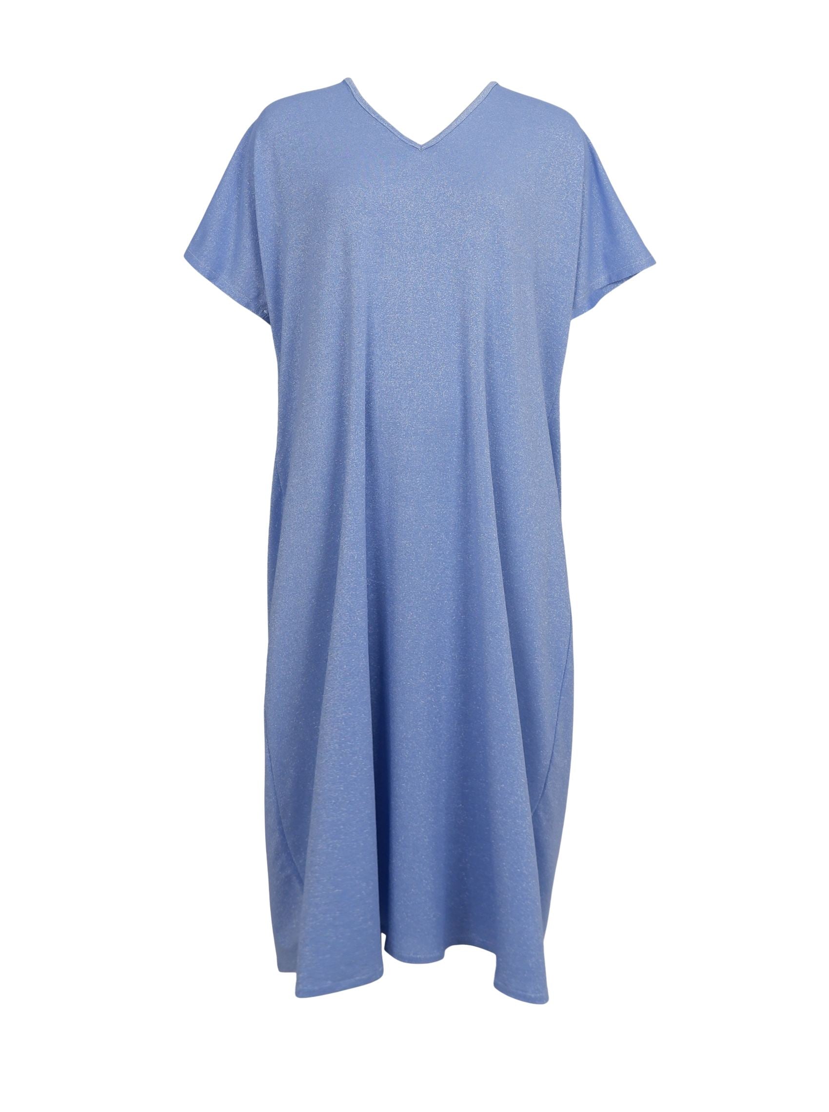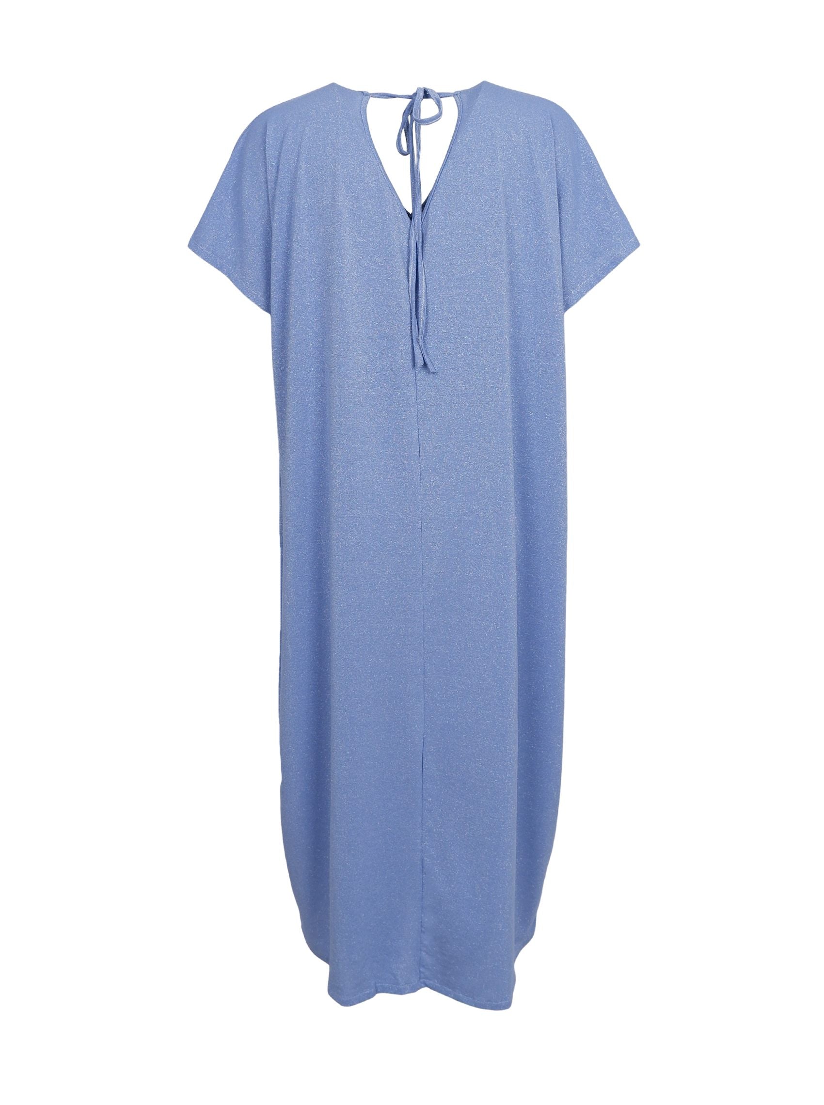 Unser Faye Kleid aus glitzerndem Lurex hat eine luftig-leichte Passform und ist somit perfekt für festliche Anlässe und heiße Sommertage. Das Kleid hat vorne und hinten einen V-Ausschnitt und ist im Nacken mit einem Bindeband versehen, das dem Kleid einen femininen Touch verleiht und für einen bequemen Sitz sorgt.