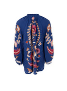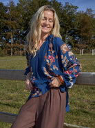 Lockere Bluse aus leichtem Lyocell-Material mit V-Ausschnitt und langen, weiten Ärmeln. Das Modell ist in schönen Herbst- und Winterfarben erhältlich und hat farbenfrohe Stickdetails auf Vorder- und Rückseite sowie an den Ärmeln, die für einen Bohème-inspirierten Look sorgen.