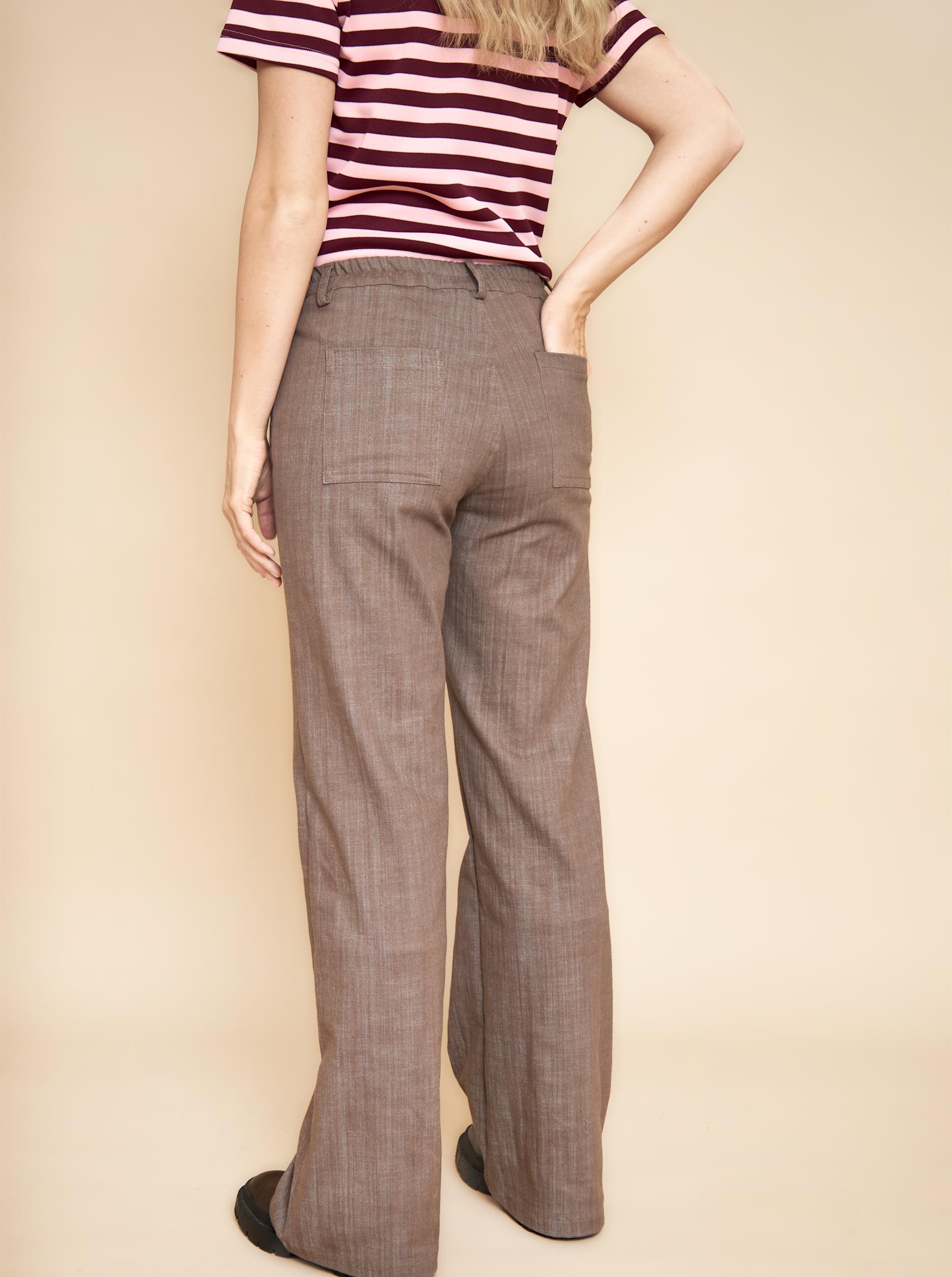 Diese neue Boxhose kombiniert klassischen Schnitt mit modernem Komfort. Sie hat ein leicht weites Bein, das für eine schmeichelhafte Silhouette und einen eleganten Saum sorgt. Die Hose hat einen festen Bund mit Gürtelschlaufen, schräge Vordertaschen und zwei Gesäßtaschen, die den zeitlosen Look vervollständigen. Das weiche Material und die leichte Struktur machen sie ideal für Arbeit und Alltag.