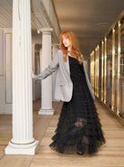 Die Bluse Perla ist eine elegante und feminine Bluse aus transparentem Netzstoff mit feinen Perlen, die ihr einen raffinierten Look verleihen. Die Bluse hat eine lockere Passform, einen Rundhalsausschnitt und voluminöse Ärmel mit leichtem Gummizug am Saum, der für einen leichten und luftigen Fall sorgt. Tragen Sie sie über einem Top mit einer eleganten Hose.