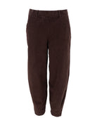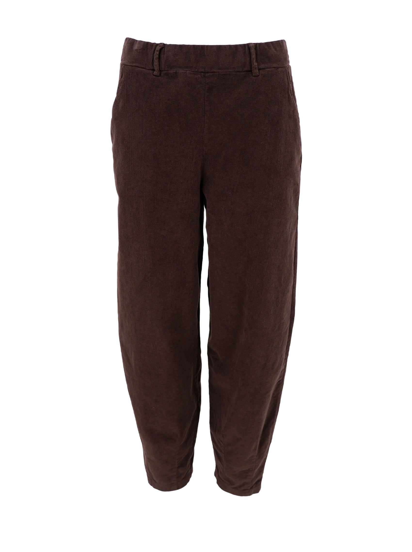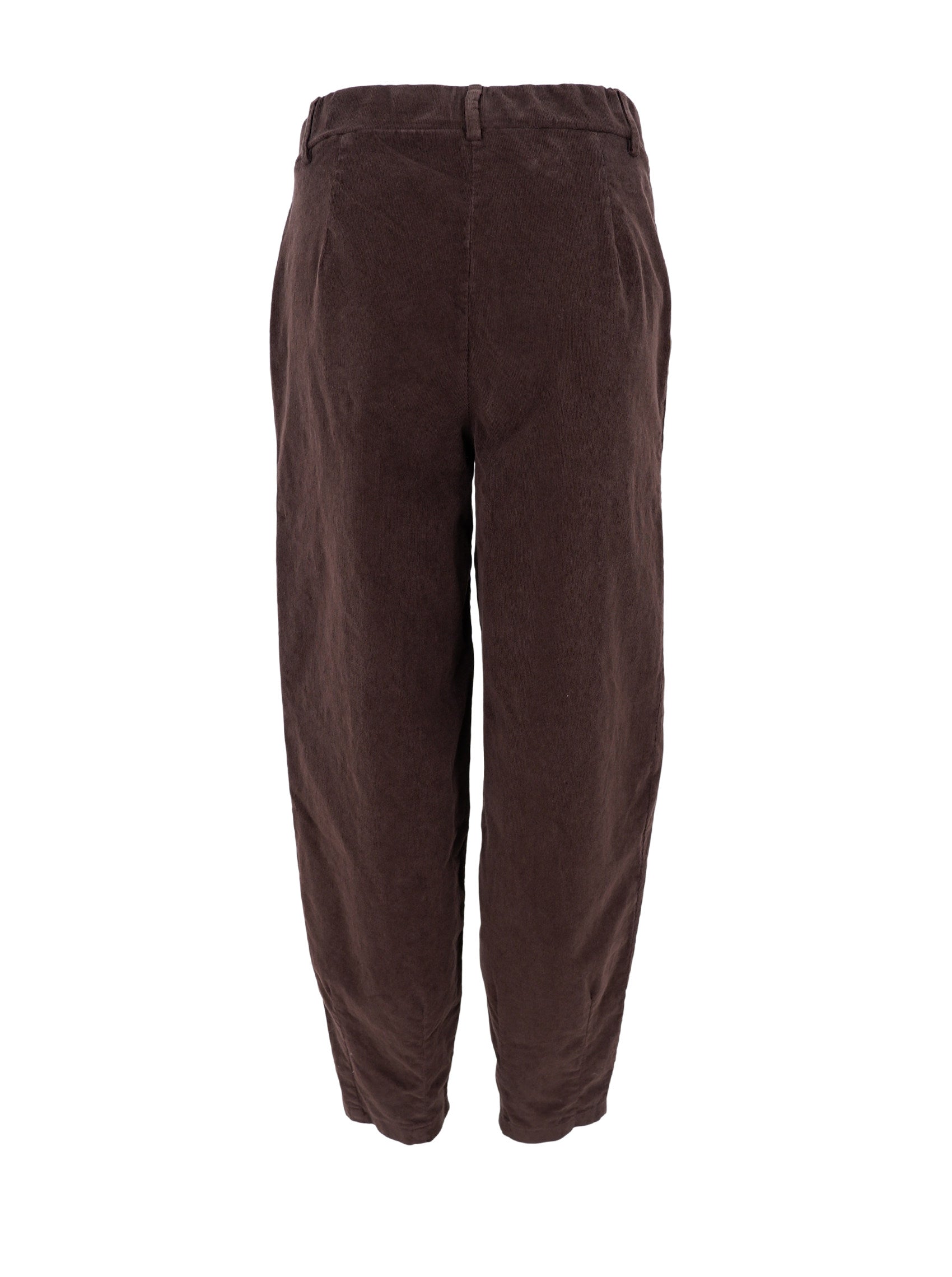 Coolste Barrel-Hose aus weichem Babycord mit entspannter Passform. Das Modell hat einen elastischen Bund hinten, Gürtelschlaufen, Seitentaschen und ein leicht abgerundetes Bein, das für einen modernen und bequemen Look sorgt.