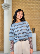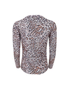Bedruckte Netzbluse mit Strasssteinen rundum.