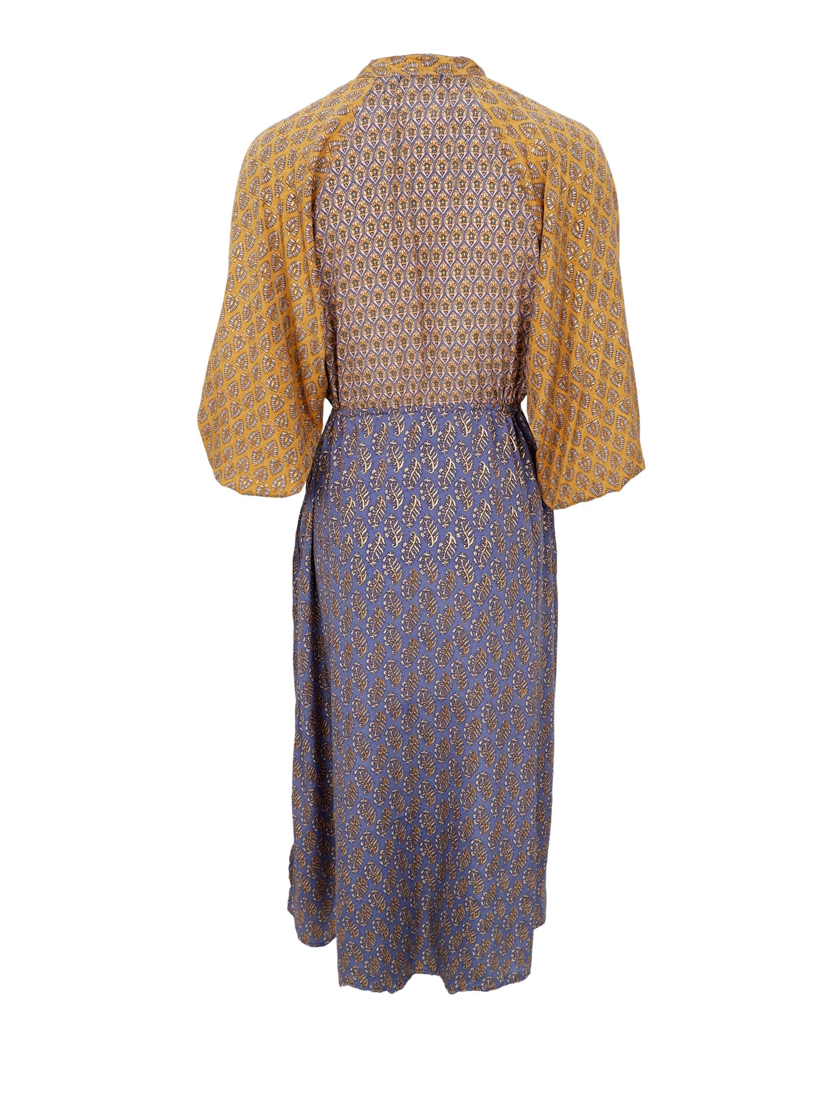 Langes Kleid mit V-Ausschnitt und langen Ärmeln.