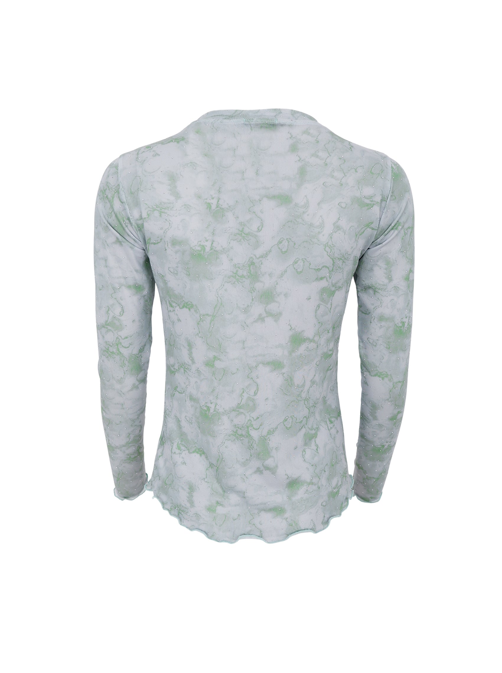 Bedruckte Netzbluse mit Strasssteinen rundum.