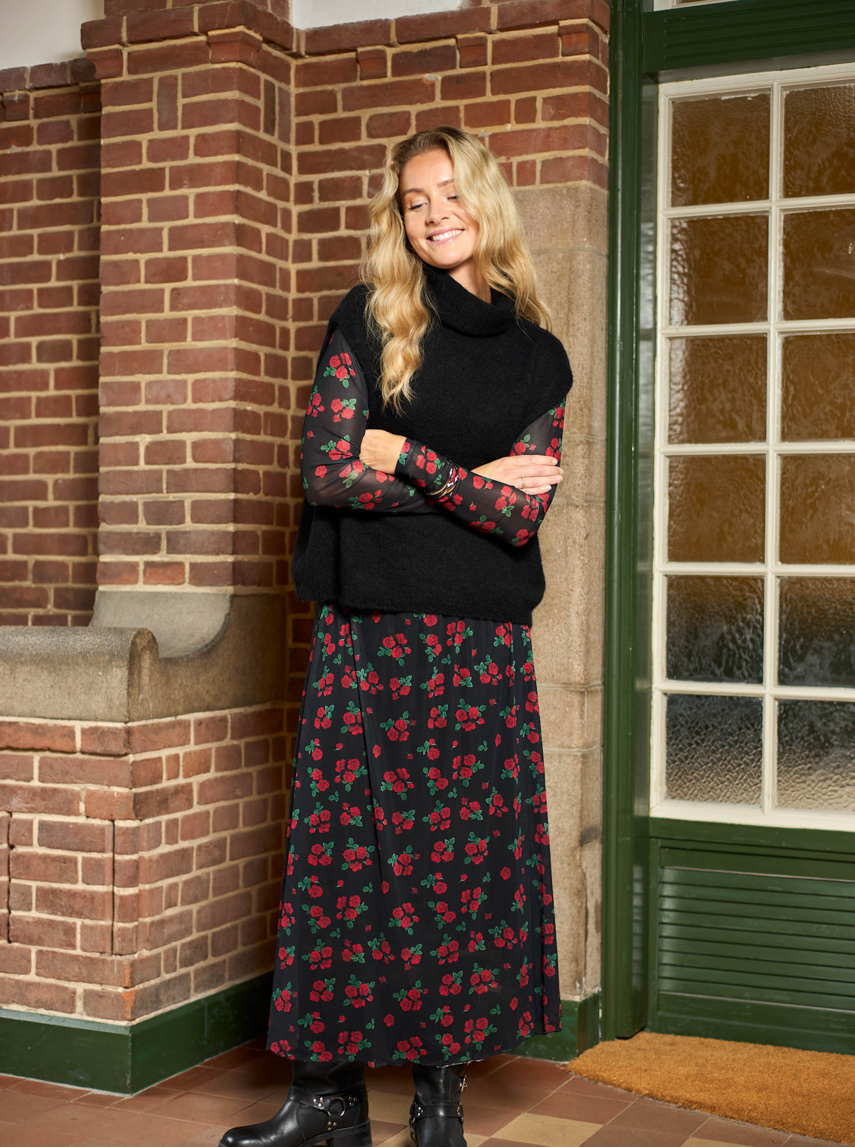 BCANNIE Netzbluse - Rote Blume