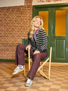 BCDELL gestreifte Strickjacke – Dunkelgrau
