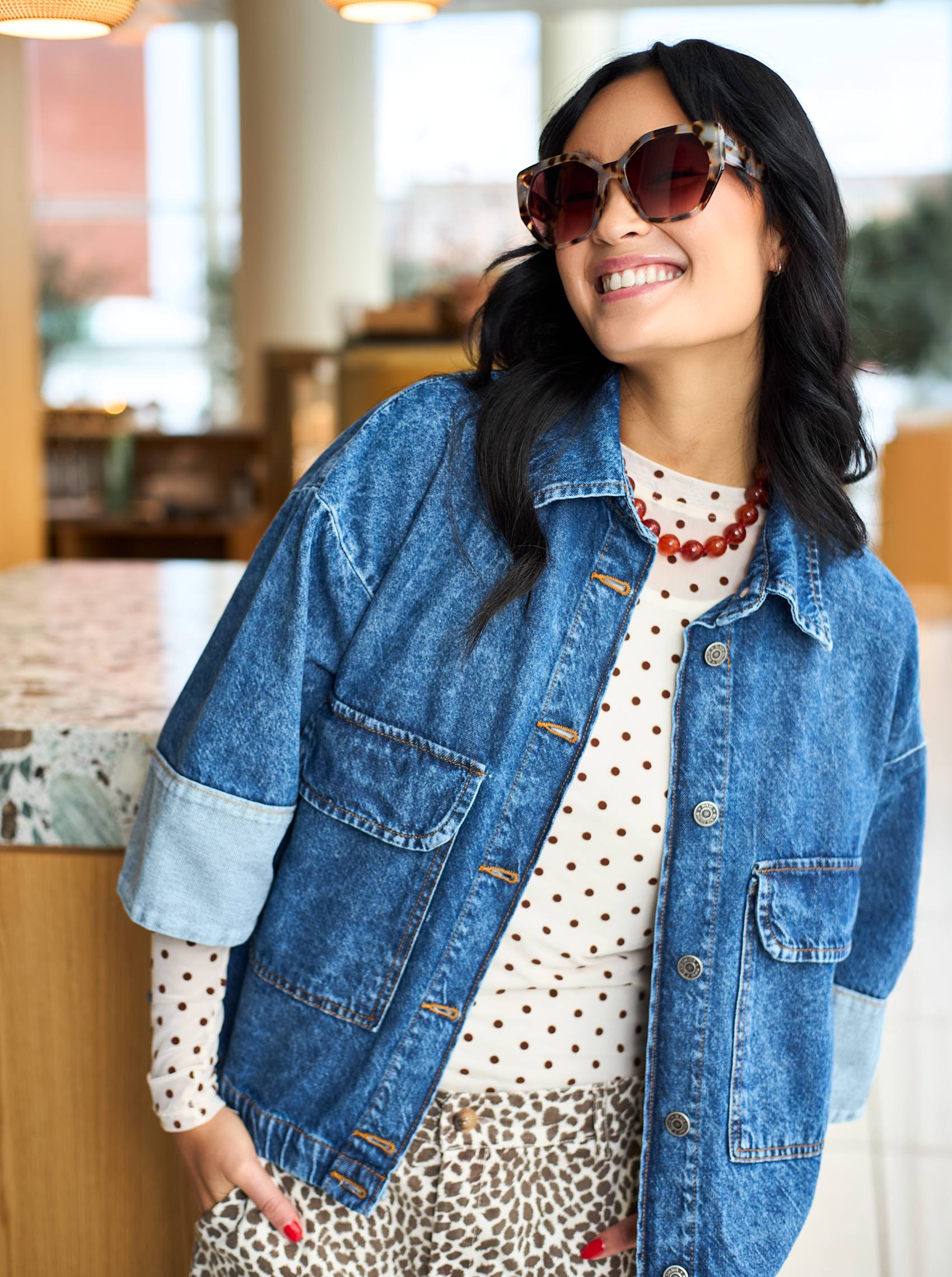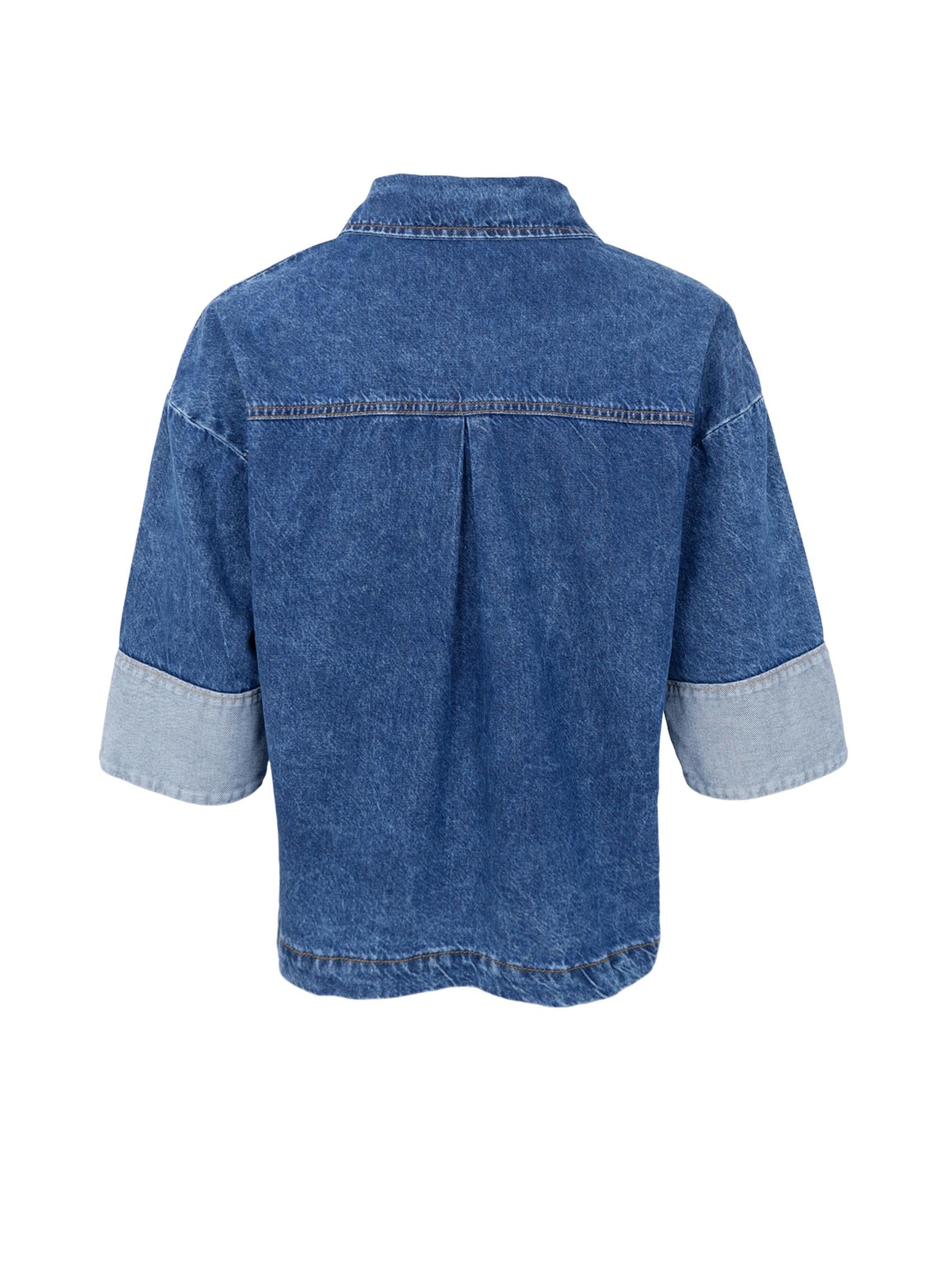 Die Izzy Jeansjacke besticht durch ihren geraden, lässigen Schnitt und ihren klassischen Look. Sie wird mit dekorativen Logoknöpfen geschlossen und verfügt über Brusttaschen. Die Ärmel sind mit kontrastierendem Denim abgesetzt, was der Jacke einen markanten, aber dezenten Stil verleiht. Kombinieren Sie die Jacke mit der passenden Izzy Hose für einen kompletten Look.