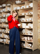 Das Kleidungsstück im nassen Zustand in Form ziehen und anschließend dämpfen, um es zu öffnen und seine ursprüngliche Form und sein Aussehen wiederherzustellen.