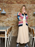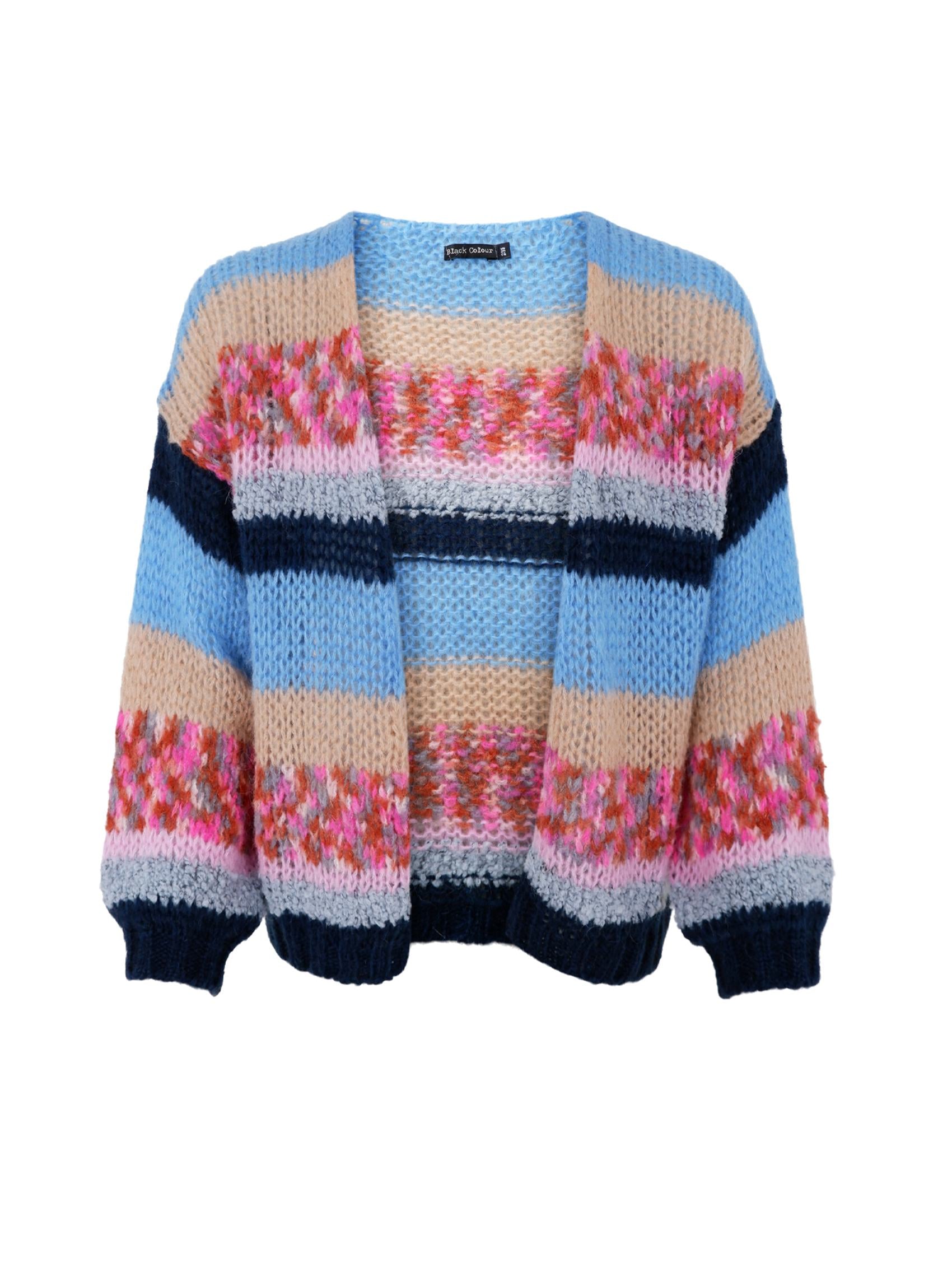 Gebürstete, langärmelige Strickjacke mit Streifen.