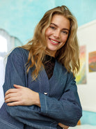 Die Astrid Jacke ist eine vielseitige und stilvolle Jacke aus einer schönen Baumwollmischung. Sie eignet sich perfekt für drinnen oder als Übergangsjacke, wenn das Wetter es zulässt. Die Jacke hat feine herzförmige Knöpfe, die ihr einen einzigartigen und femininen Look verleihen. Kombinieren Sie sie mit dem passenden Astrid Rock oder der feinen Astrid Hose für ein komplettes Set!