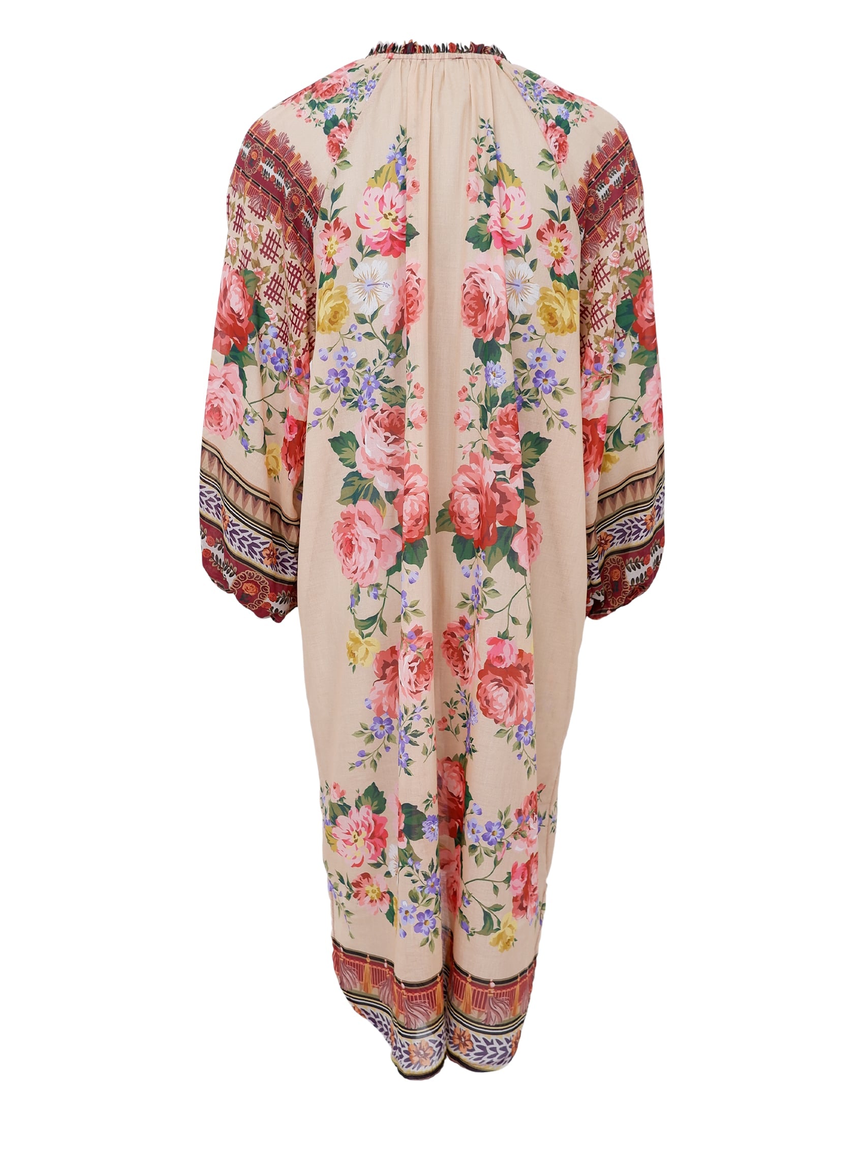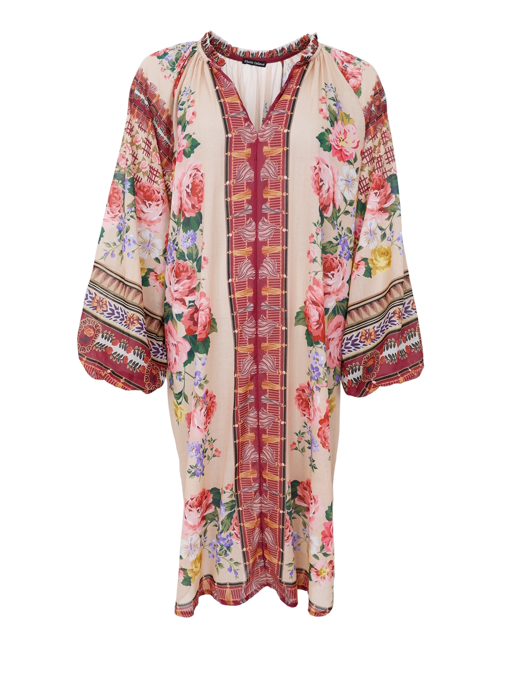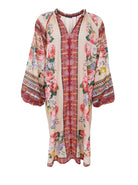 Das Dahlia-Kleid ist ein lebendiges Statement-Stück, das warme Farbtöne mit romantischen Details kombiniert. Die wunderschönen Blumen und grafischen Bänder sorgen für einen einzigartigen und künstlerischen Ausdruck, während die lockere Passform und die luftige Baumwollqualität für Freiheit und Komfort sorgen.