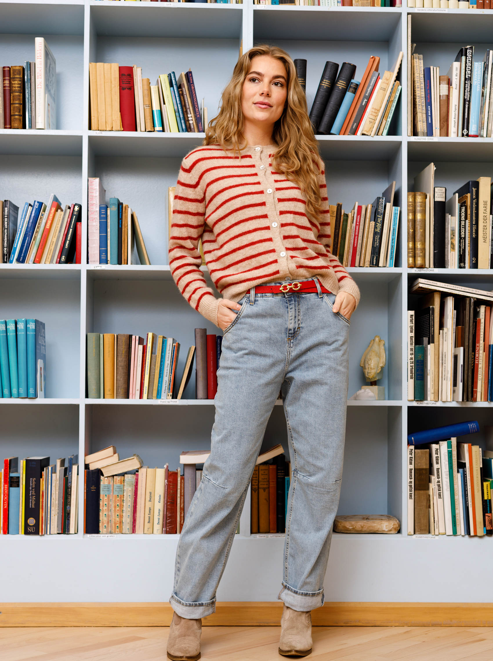 Unsere Barrel Jeans ist eine coole Jeans in kräftiger heller Waschung mit schmal zulaufendem Bein. Die Hose hat Vorder- und Gesäßtaschen sowie einen Reißverschluss. Die lockere Passform sorgt für einen trendigen und coolen Look.