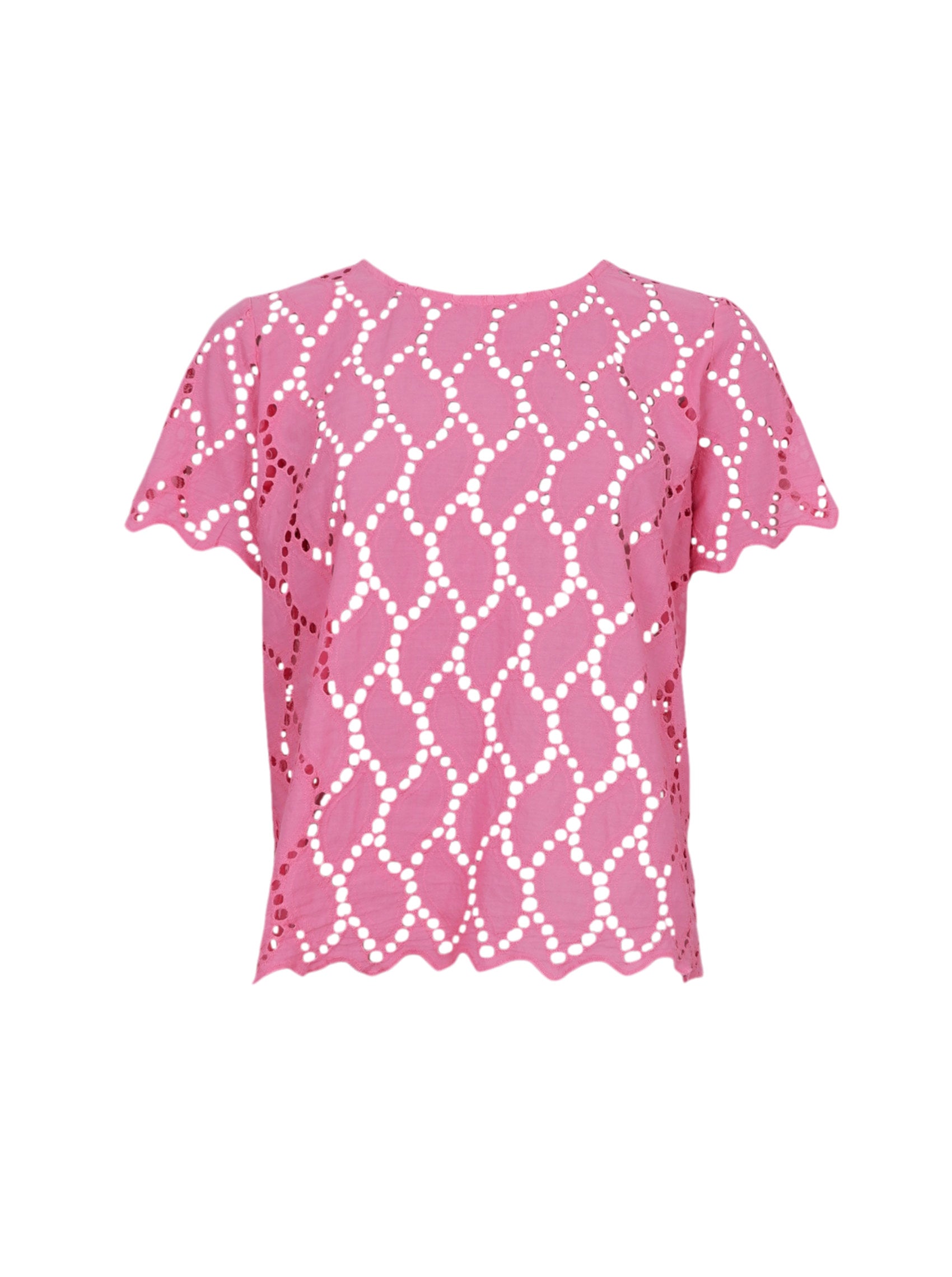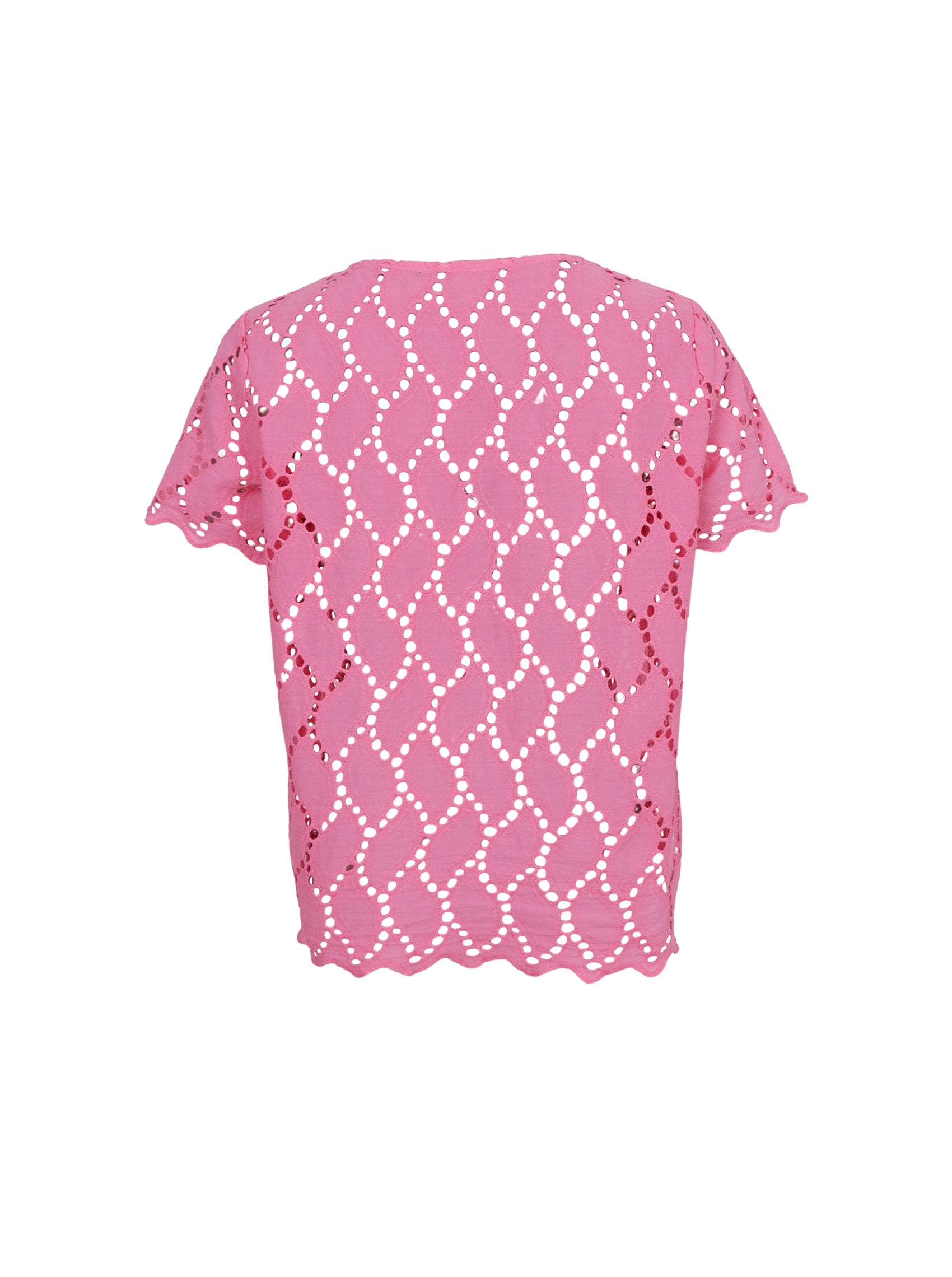 Die Bluse Freya ist eine elegante Kurzarmbluse mit Rundhalsausschnitt. Sie besteht aus einem wunderschön bestickten Stoff mit feinen Ausschnitten, die ihr einen femininen und luftigen Ausdruck verleihen. Die Bluse hat einen gewellten Saum an Ärmeln und Saum, der ihr einen leichten und sommerlichen Look verleiht.