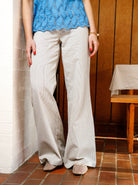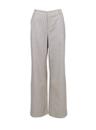 Unsere Lolly-Hose ist die perfekte Ergänzung für jede Garderobe und vereint Stil und Komfort perfekt. Die Hose hat ein feines Nadelstreifenmuster und einen Gummizug in der Taille, was sie dehnbar und bequem macht. Die Hose hat weite Beine und eine mittelhohe Taille, was ihr einen trendigen Schnitt verleiht.