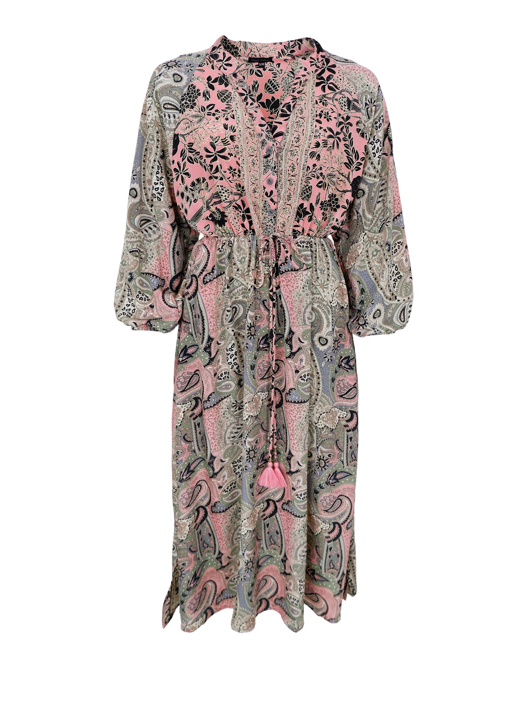 Dieses wunderschöne lange Kleid ist die perfekte Ergänzung für Ihre Garderobe. Es hat schöne, weite Ärmel und einen Bindegürtel in der Taille, der für eine schöne Silhouette und eine verstellbare Passform sorgt. Das Kleid ist in wunderschönen und einzigartigen Prints erhältlich, die Ihre Weiblichkeit perfekt betonen.