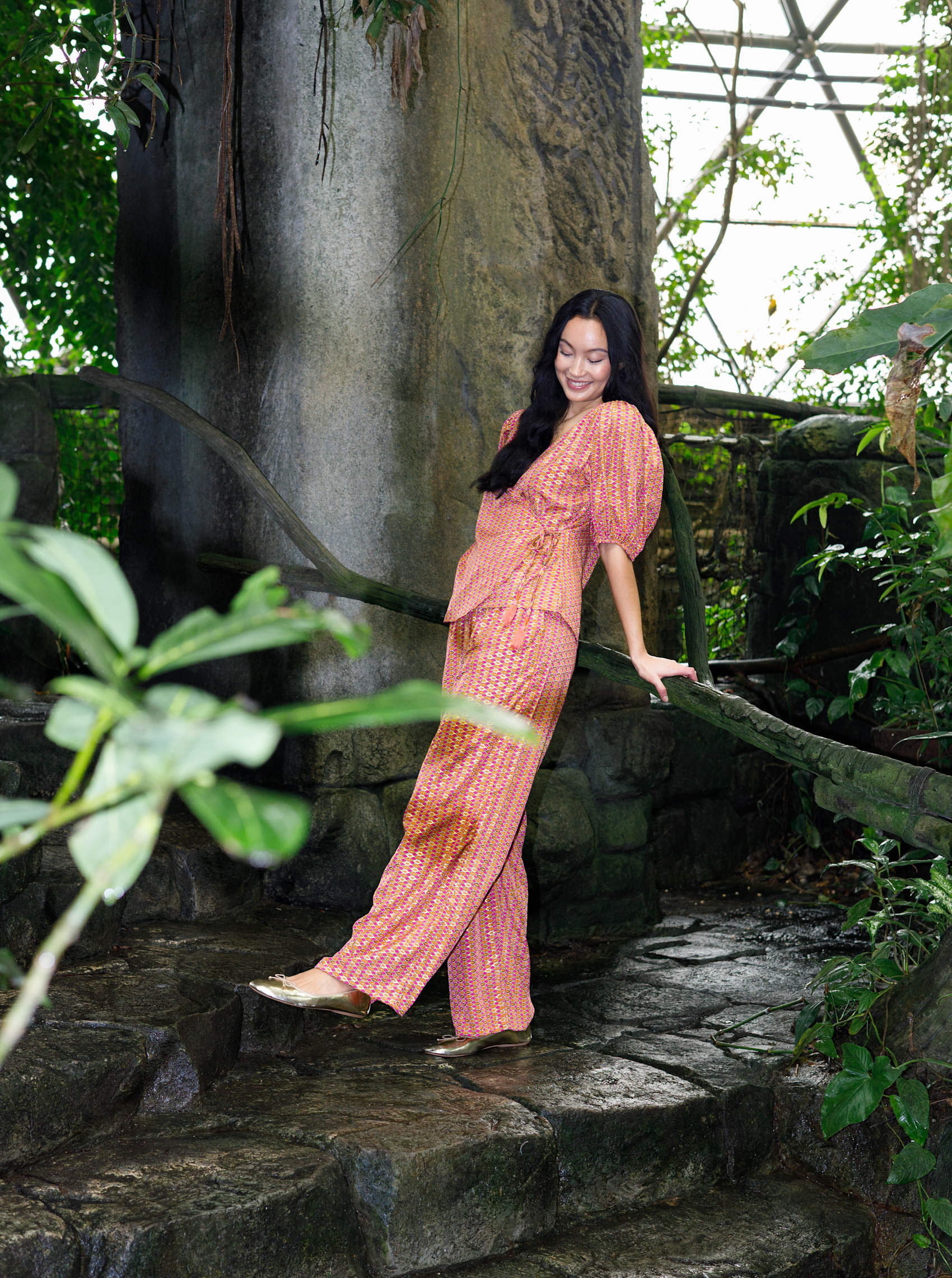 Unsere beliebte Luna-Hose ist eine lockere Hose mit weitem Bein und verstellbarem Kordelzug in der Taille. Die Hose ist in vielen einzigartigen und detaillierten Prints erhältlich, die jeden Look aufpeppen.