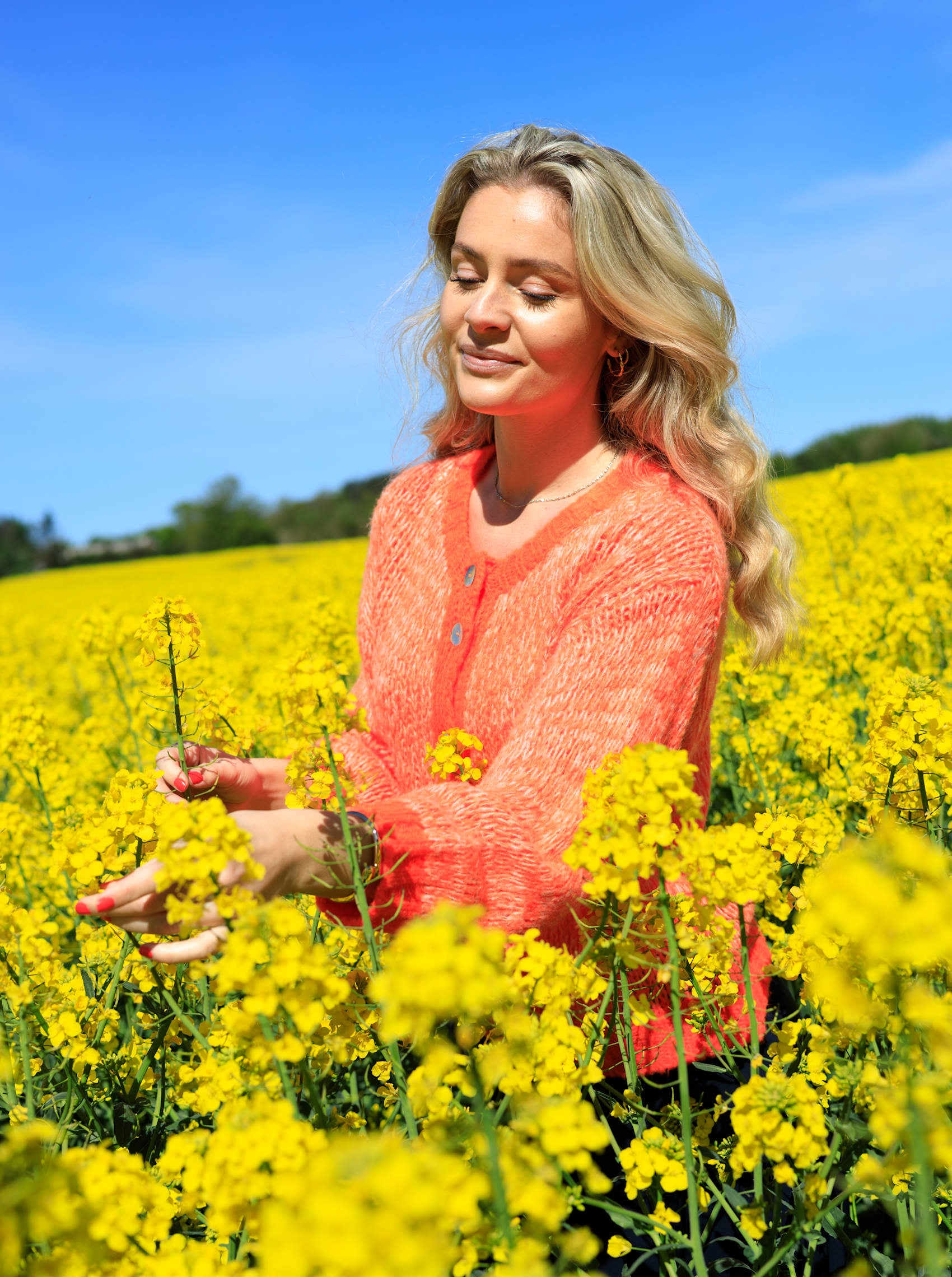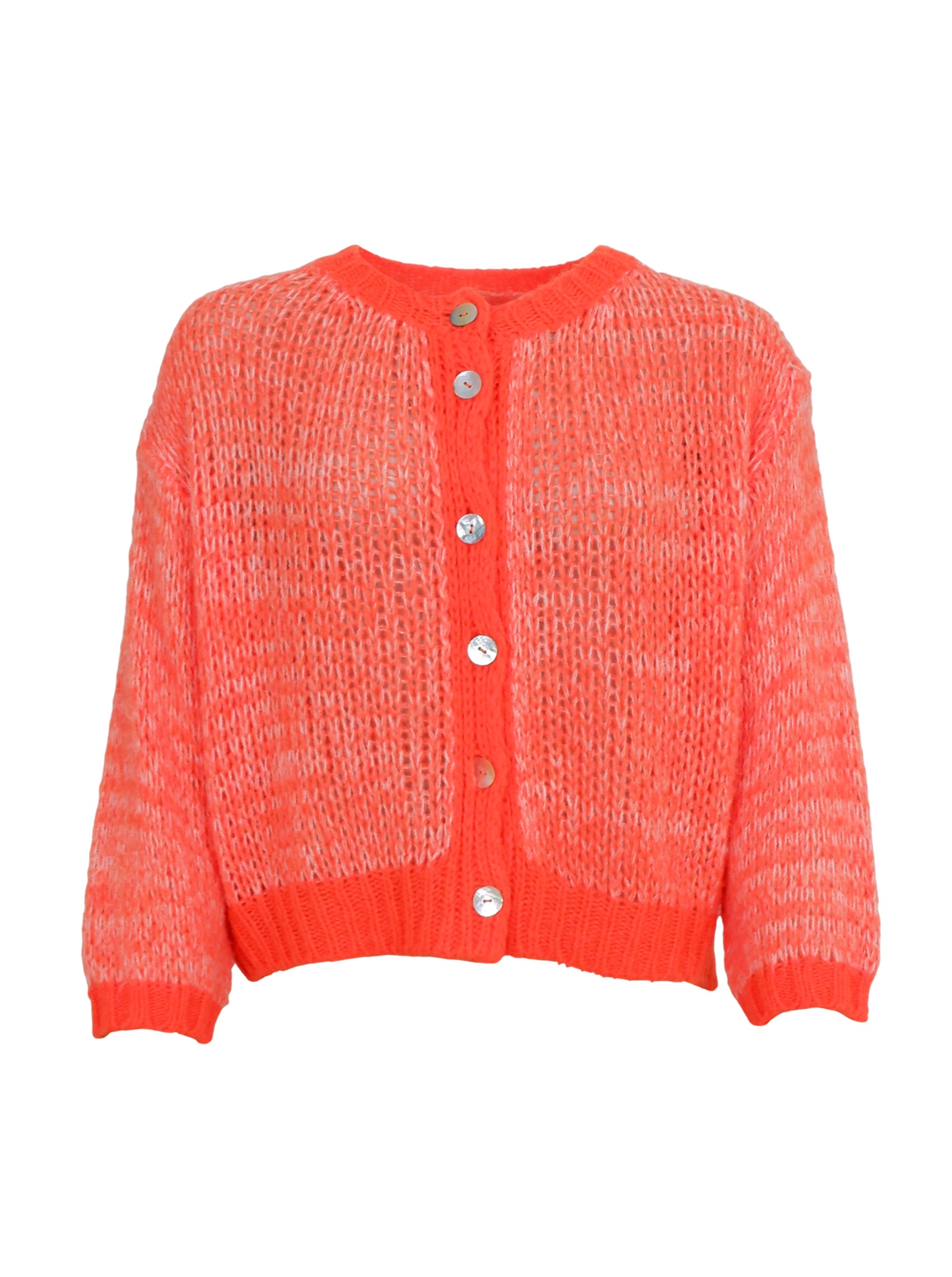 Unsere Melange-Strickjacke Maeve vereint Farben und Texturen auf feinste Weise. Sie hat einen gerippten Halsausschnitt, Saum und Ärmel sowie Perlmuttknöpfe, die für eine feminine Note sorgen. Ein kurzer und schöner Strick, der jedes Outfit aufpeppt.