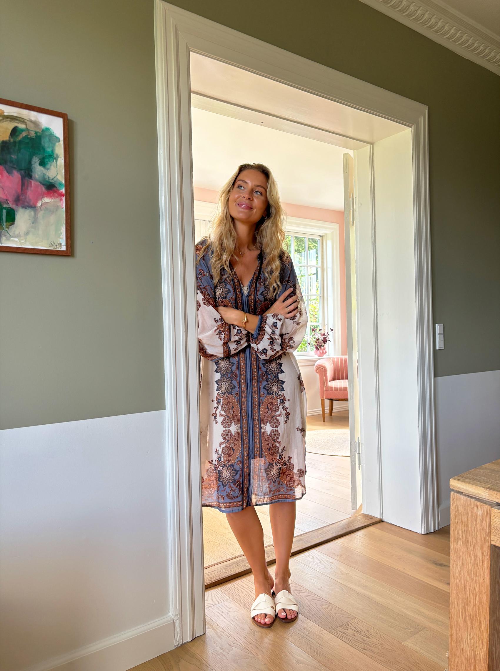 Das Indigo-Kleid ist mit seinem schönen Farbspiel und dem eleganten Ausschnitt feminin und lässig zugleich. Die weichen Ärmel mit leichtem Volumen und Gummizug sorgen für einen entspannten Look, während der lockere Schnitt das Kleid perfekt für warme Tage und gemütliche Abende macht.