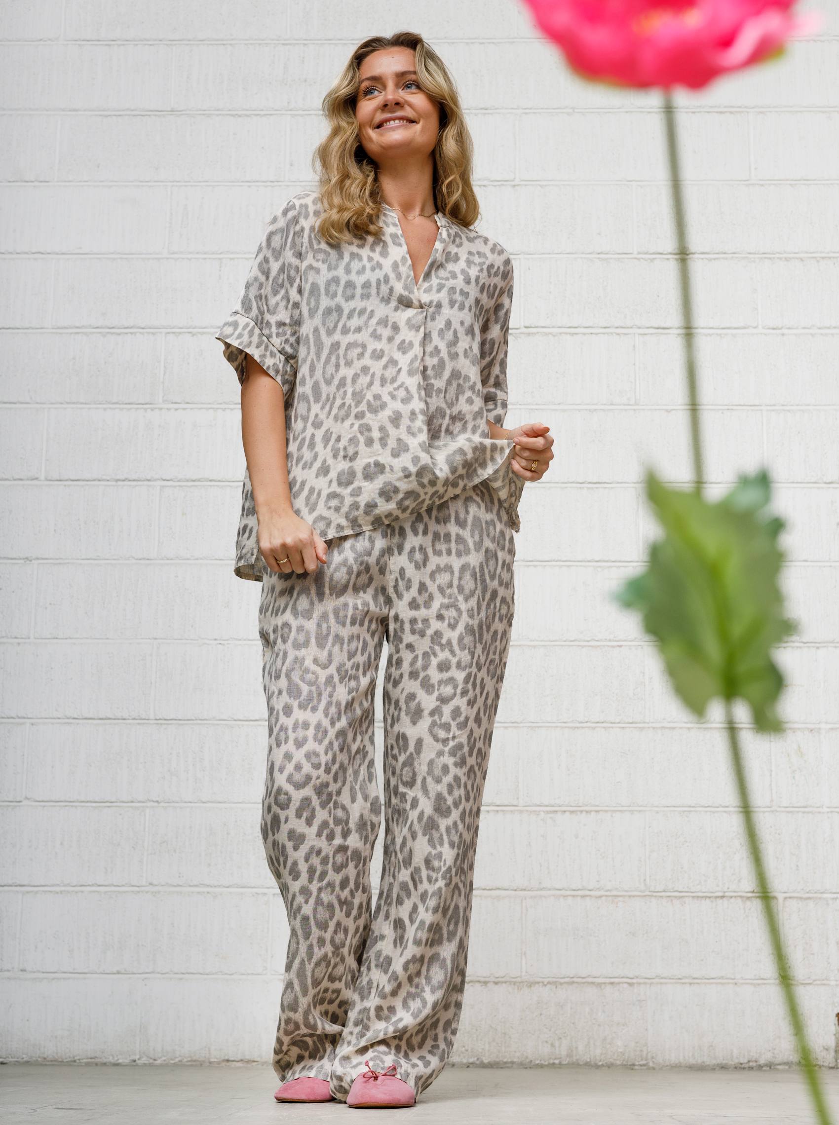 Diese weite Leinenhose ist die perfekte Wahl für einen entspannten und stilvollen Alltagslook. Gefertigt aus leichtem und atmungsaktivem Leinen bietet sie maximalen Tragekomfort, während der weite Schnitt für eine elegante Silhouette sorgt. Mit ihrer luftigen Textur ist die Hose ideal für warme Tage und passt sowohl zu einem schlichten T-Shirt als auch zu einer eleganten Bluse. Der elastische Bund und das zeitlose Design machen sie zu einem vielseitigen und bequemen Kleidungsstück für jede Garderobe.