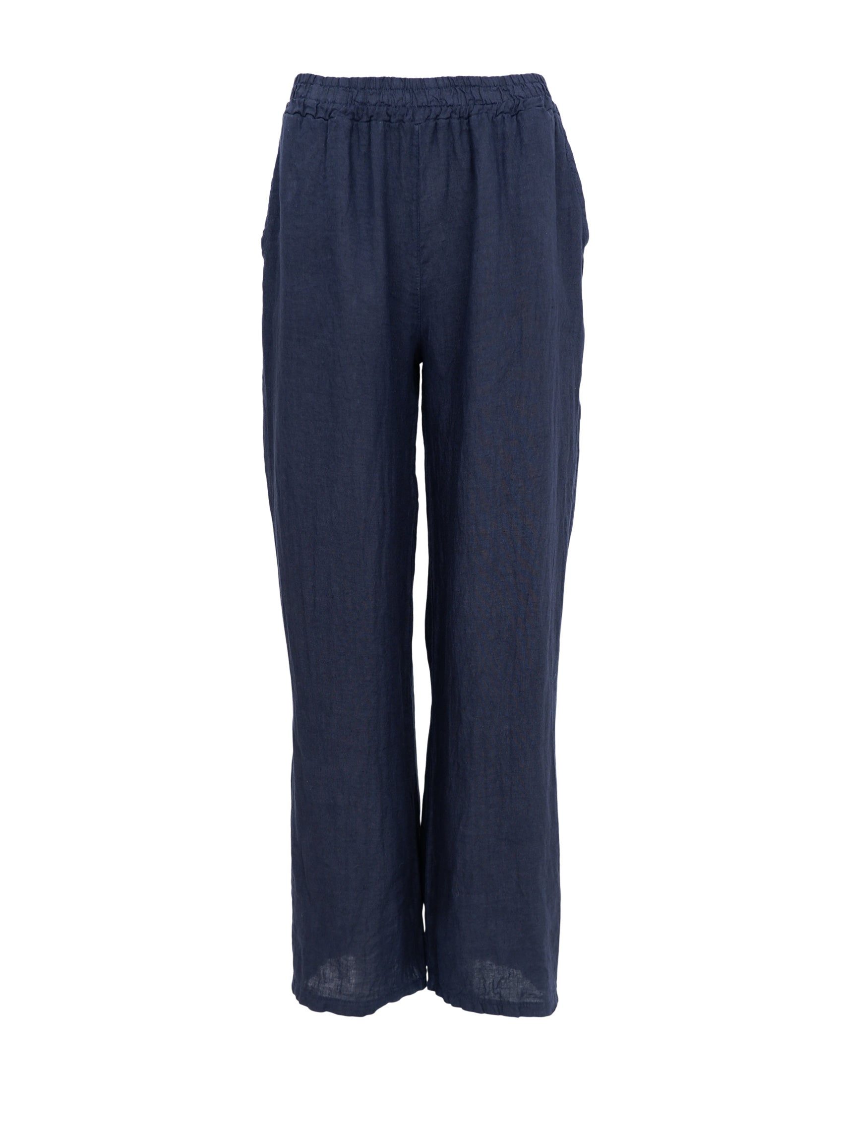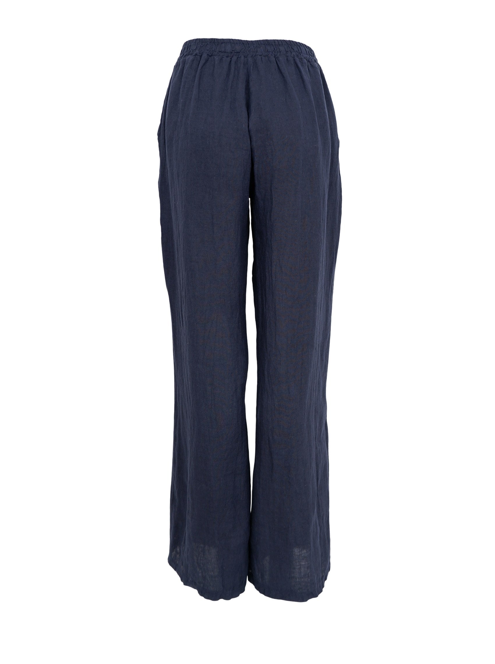 Diese weite Leinenhose ist die perfekte Wahl für einen entspannten und stilvollen Alltagslook. Gefertigt aus leichtem und atmungsaktivem Leinen bietet sie maximalen Tragekomfort, während der weite Schnitt für eine elegante Silhouette sorgt. Mit ihrer luftigen Textur ist die Hose ideal für warme Tage und passt sowohl zu einem schlichten T-Shirt als auch zu einer eleganten Bluse. Der elastische Bund und das zeitlose Design machen sie zu einem vielseitigen und bequemen Kleidungsstück für jede Garderobe.