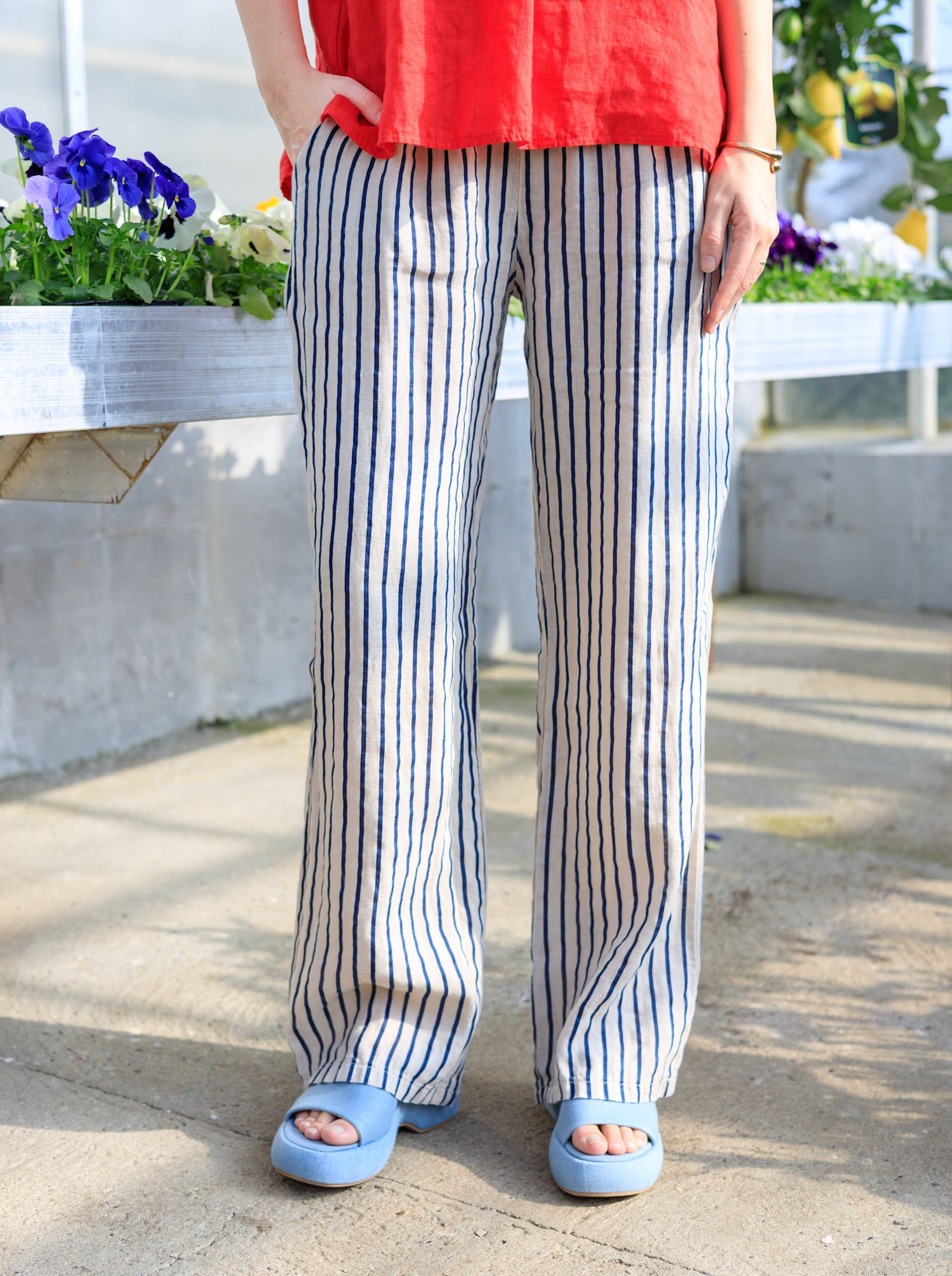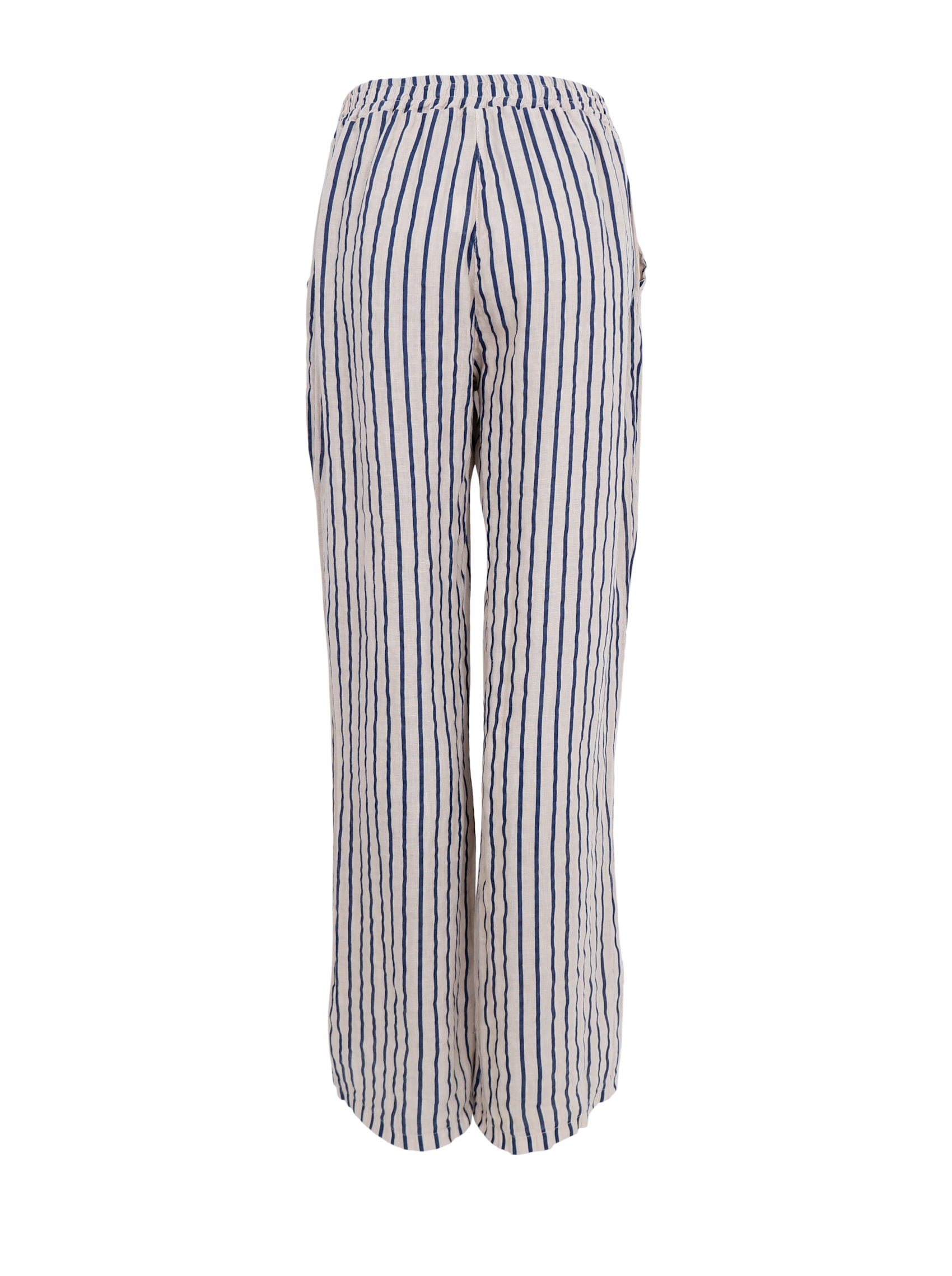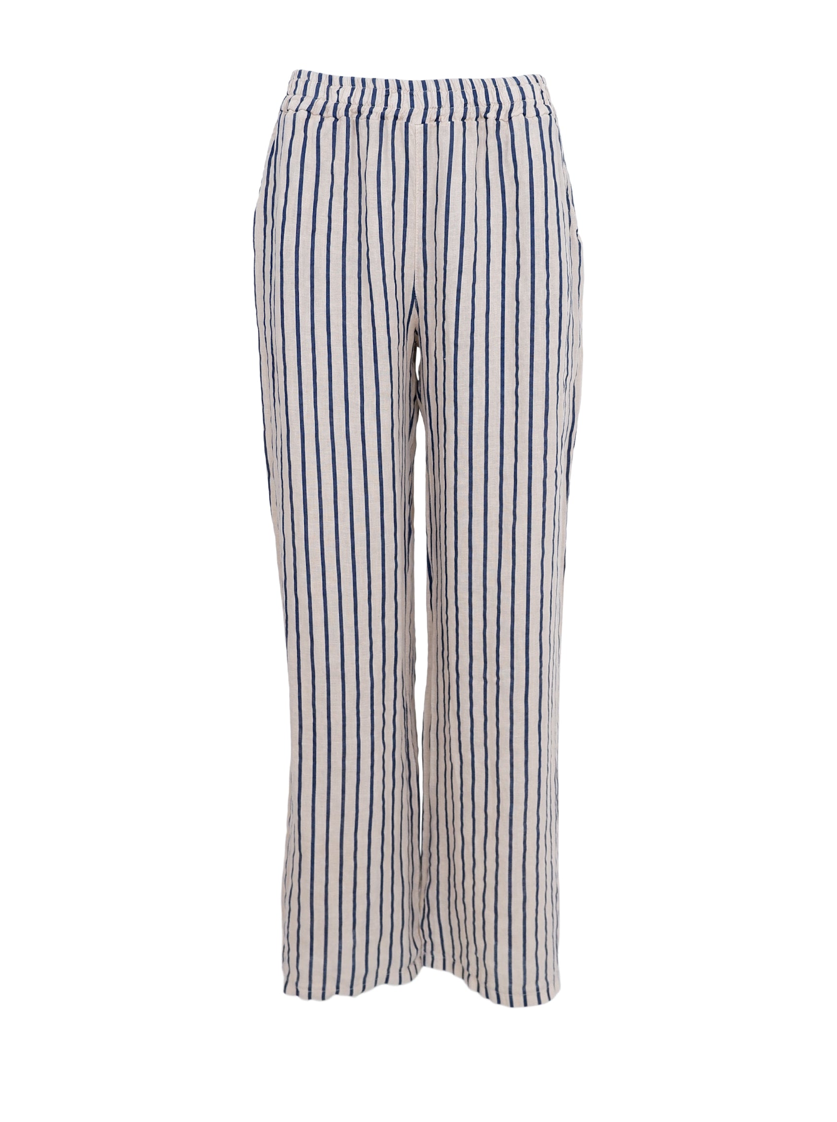 BCMELINA weite Leinenhose – Marineblau gestreift