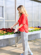 Diese weite Leinenhose ist die perfekte Wahl für einen entspannten und stilvollen Alltagslook. Gefertigt aus leichtem und atmungsaktivem Leinen bietet sie maximalen Tragekomfort, während der weite Schnitt für eine elegante Silhouette sorgt. Mit ihrer luftigen Textur ist die Hose ideal für warme Tage und passt sowohl zu einem schlichten T-Shirt als auch zu einer eleganten Bluse. Der elastische Bund und das zeitlose Design machen sie zu einem vielseitigen und bequemen Kleidungsstück für jede Garderobe.