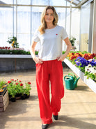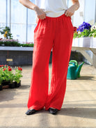 Diese weite Leinenhose ist die perfekte Wahl für einen entspannten und stilvollen Alltagslook. Gefertigt aus leichtem und atmungsaktivem Leinen bietet sie maximalen Tragekomfort, während der weite Schnitt für eine elegante Silhouette sorgt. Mit ihrer luftigen Textur ist die Hose ideal für warme Tage und passt sowohl zu einem schlichten T-Shirt als auch zu einer eleganten Bluse. Der elastische Bund und das zeitlose Design machen sie zu einem vielseitigen und bequemen Kleidungsstück für jede Garderobe.