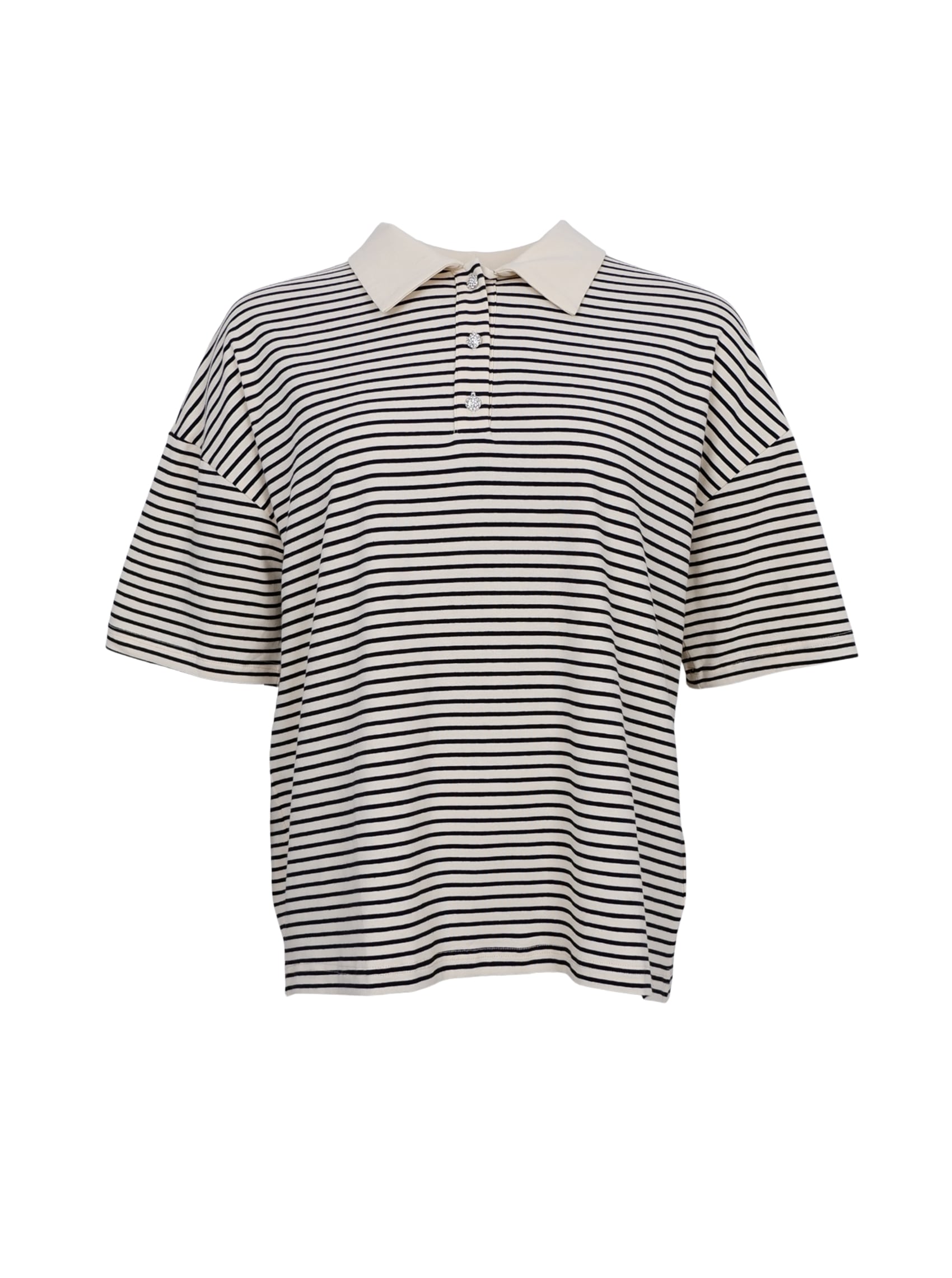 Unser kurzärmliges Millia Polo ist ein bequemes und stylisches Poloshirt mit Streifen. Das Poloshirt ist locker geschnitten und bietet hohen Tragekomfort und ist gleichzeitig stylisch. Die feinen Kunstknöpfe verleihen dem Poloshirt eine feminine Note und einen auffälligen Look.