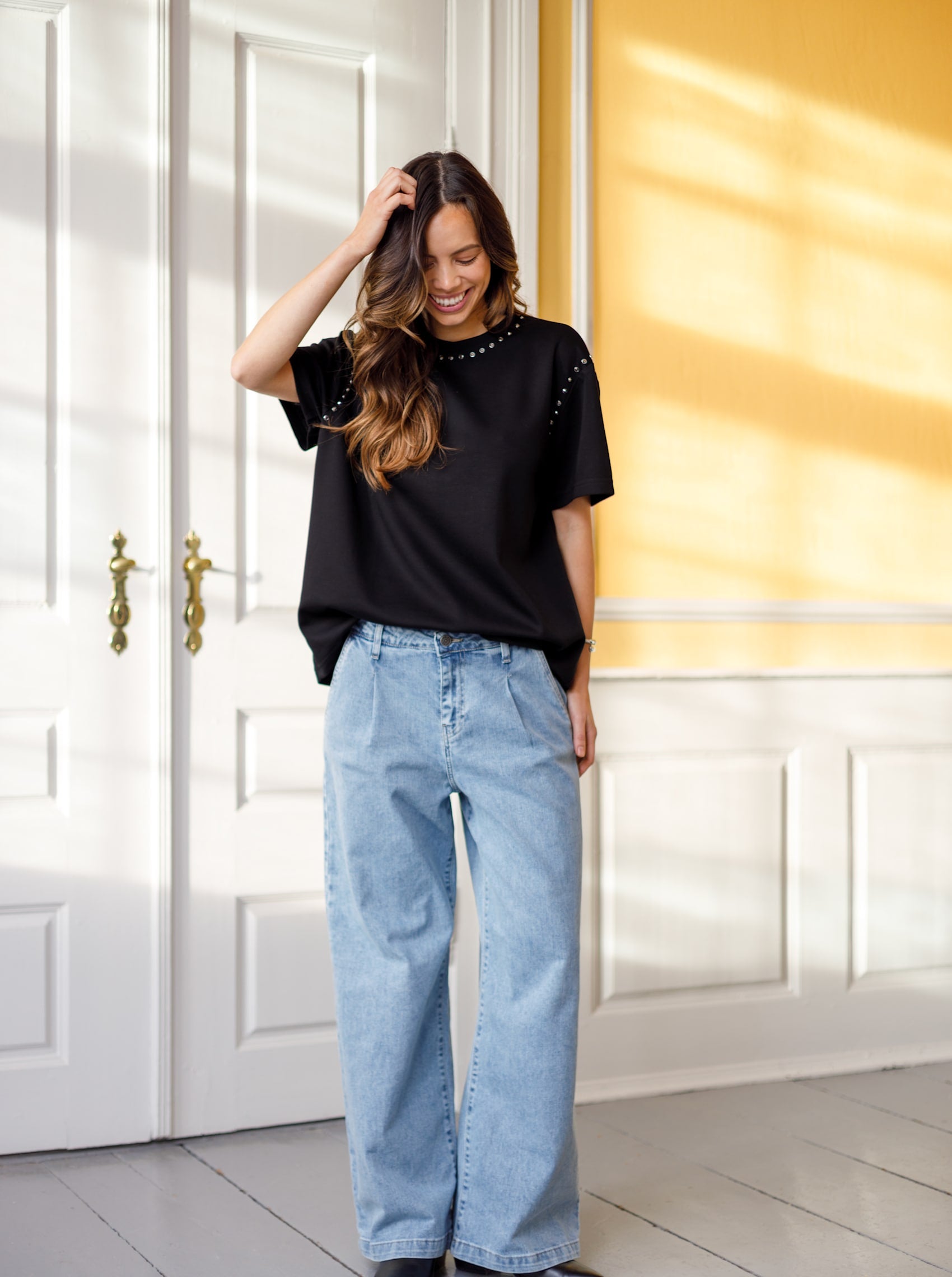 Unsere Russel Jeans ist eine tolle Oversize-Jeans, die ihr einen lockeren und trendigen Look verleiht. Die Bundfalten vorne verleihen der sonst eher schlichten Hose eine stilvolle Passform und einen raffinierten Touch. Unsere Russel Jeans ist ideal für den Alltag mit einem Oversize-T-Shirt, Hemd oder Blazer – so ist Ihnen ein trendiges und cooles Outfit garantiert!