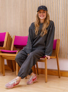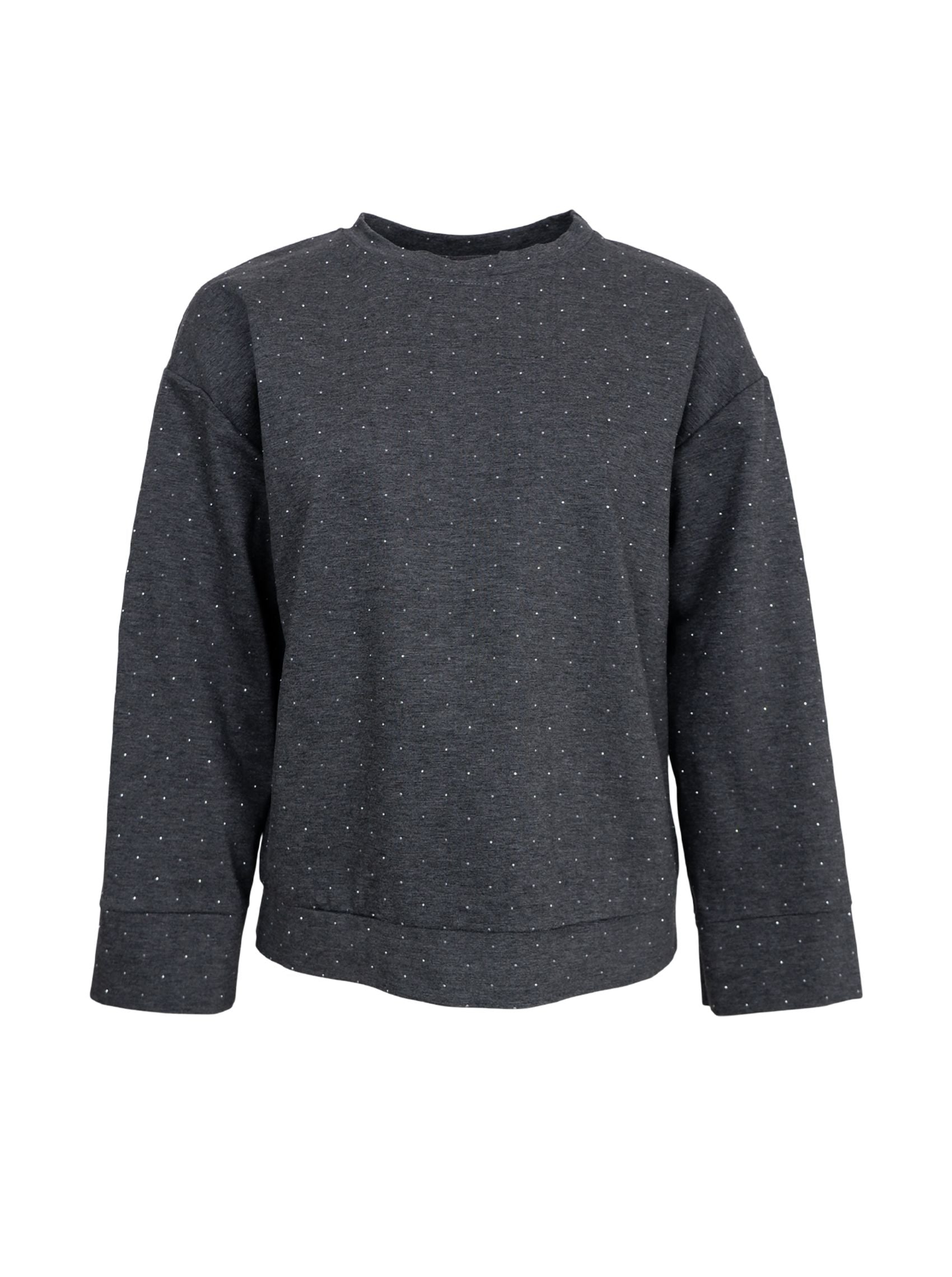 Der Simila Pullover ist ein lässiges und stylisches Sweatshirt. Der Pullover ist mit feinsten und glitzernden Strasssteinen verziert, was die Bluse einzigartig macht. Kombinieren Sie den Pullover mit der passenden Simila Jogginghose und Sie erhalten ein modernes und auffälliges Jogging-Set, das zudem unglaublich bequem ist.