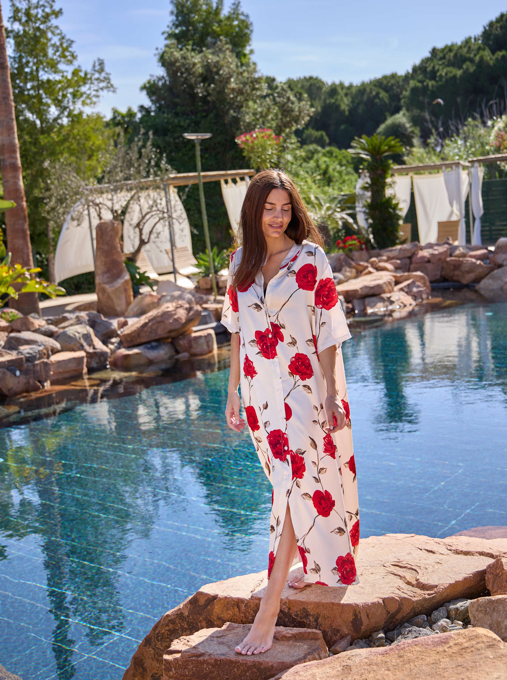 Das Tilly Kleid vereint Schlichtheit und Eleganz mit femininem Ausdruck. Das Modell hat eine lockere und leichte A-Form, kurze Ärmel und einen durchgehenden Knopfverschluss vorne. Der hohe Kragen verleiht einen modernen Touch, während die weiche Viskosequalität den ganzen Tag über für Tragekomfort sorgt. Das Kleid ist ideal für einen festlichen Anlass mit schönen High Heels.
