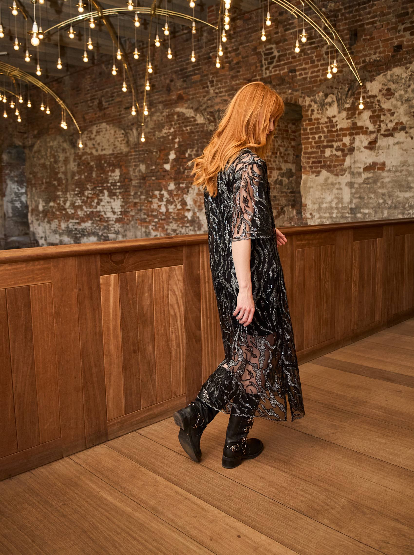 Das Maggie-Kleid ist ein auffälliges und elegantes Netzkleid mit glitzernden Details, die für einen echten Wow-Faktor sorgen. Die leicht transparente Qualität und der lockere Schnitt verleihen dem Kleid einen luftigen und eleganten Look – perfekt als Lagenlook über einem schlichten Unterkleid, Top oder einer Hose. Eine naheliegende Wahl für festliche Anlässe, bei denen Sie stilvoll auffallen möchten.