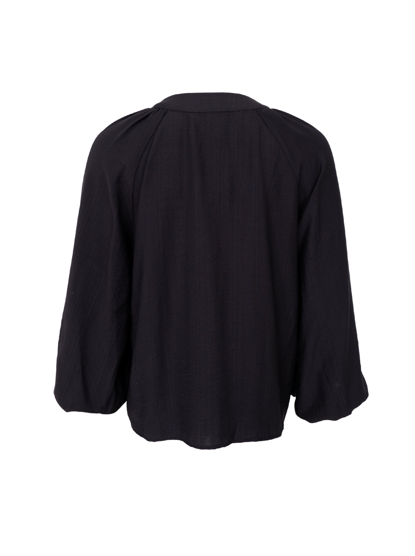 Verleihen Sie Ihrem Outfit mit dieser feinen Bluse in luftig-leichter Qualität eine feminine Note. Die Bluse hat einen eleganten V-Ausschnitt mit Falten vorne, die einen schmeichelnden Saum bilden. Die langen Ballonärmel mit Gummizug am Handgelenk verleihen Volumen und eine entspannte Eleganz. Perfekt für den Alltag und elegante Anlässe – kombinieren Sie sie mit Jeans, Hosen oder einem Rock für einen stilvollen Look.