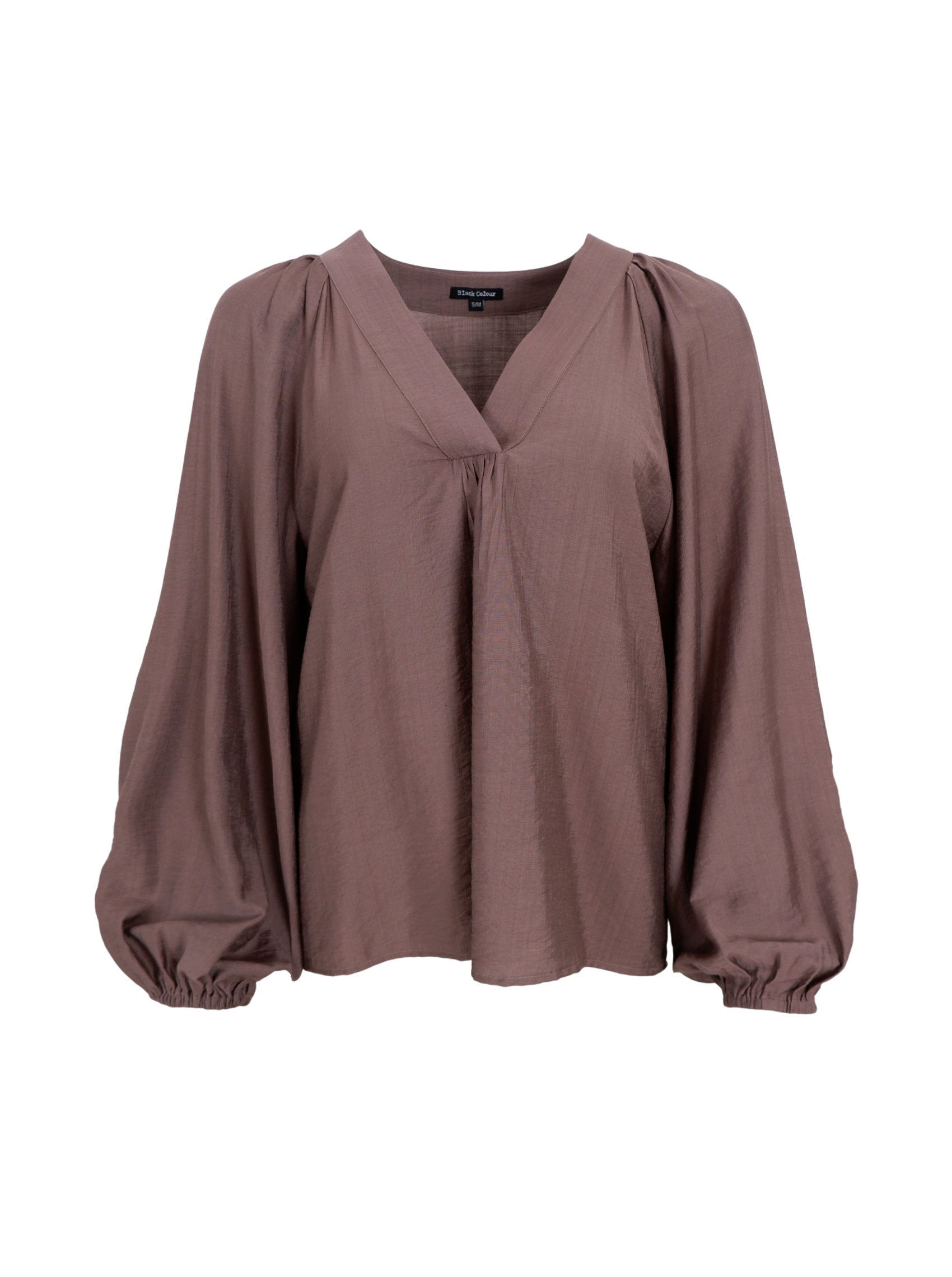 Verleihen Sie Ihrem Outfit mit dieser feinen Bluse in luftig-leichter Qualität eine feminine Note. Die Bluse hat einen eleganten V-Ausschnitt mit Falten vorne, die einen schmeichelnden Saum bilden. Die langen Ballonärmel mit Gummizug am Handgelenk verleihen Volumen und eine entspannte Eleganz. Perfekt für den Alltag und elegante Anlässe – kombinieren Sie sie mit Jeans, Hosen oder einem Rock für einen stilvollen Look.