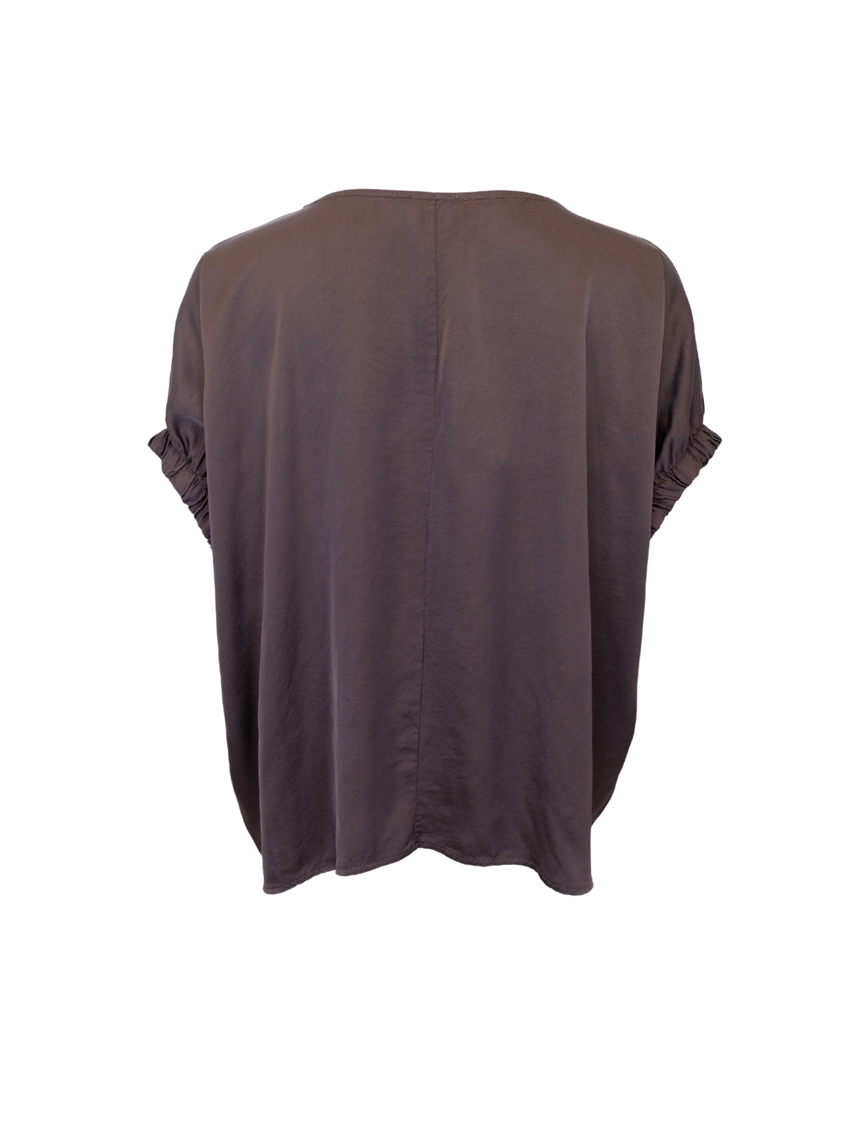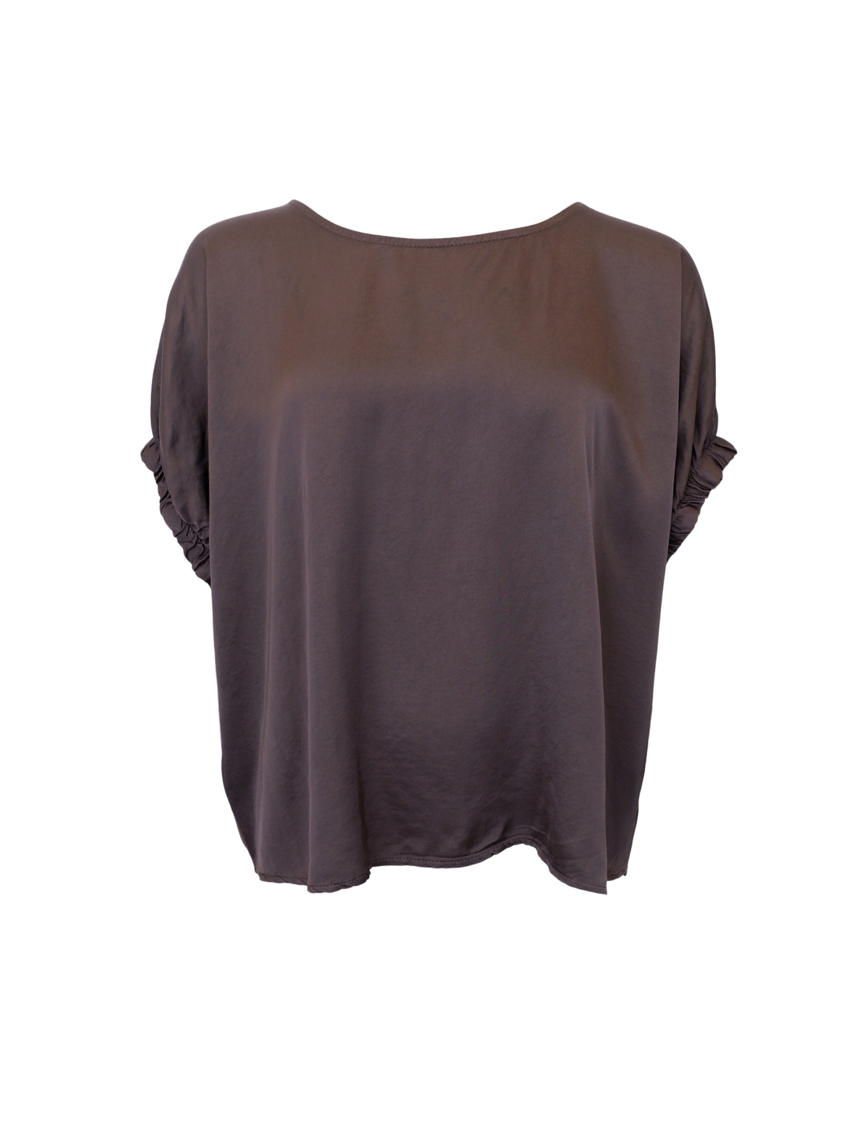 Schlichte und stilvolle Bluse mit Rundhalsausschnitt und lockerer Passform, die schön um den Körper fällt. Die kurzen Ärmel sind mit einem leichten Rüschendetail versehen, das dem ansonsten minimalistischen Look eine feminine Note verleiht. Hergestellt aus weicher und leichter Viskosequalität, ideal für den Alltag und formellere Anlässe.