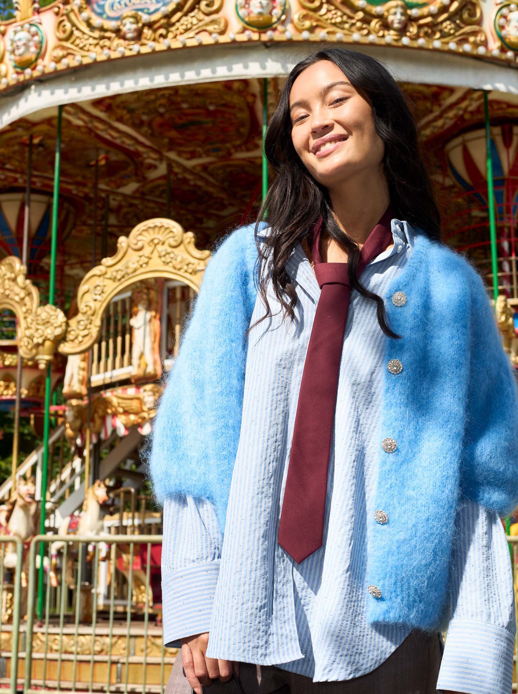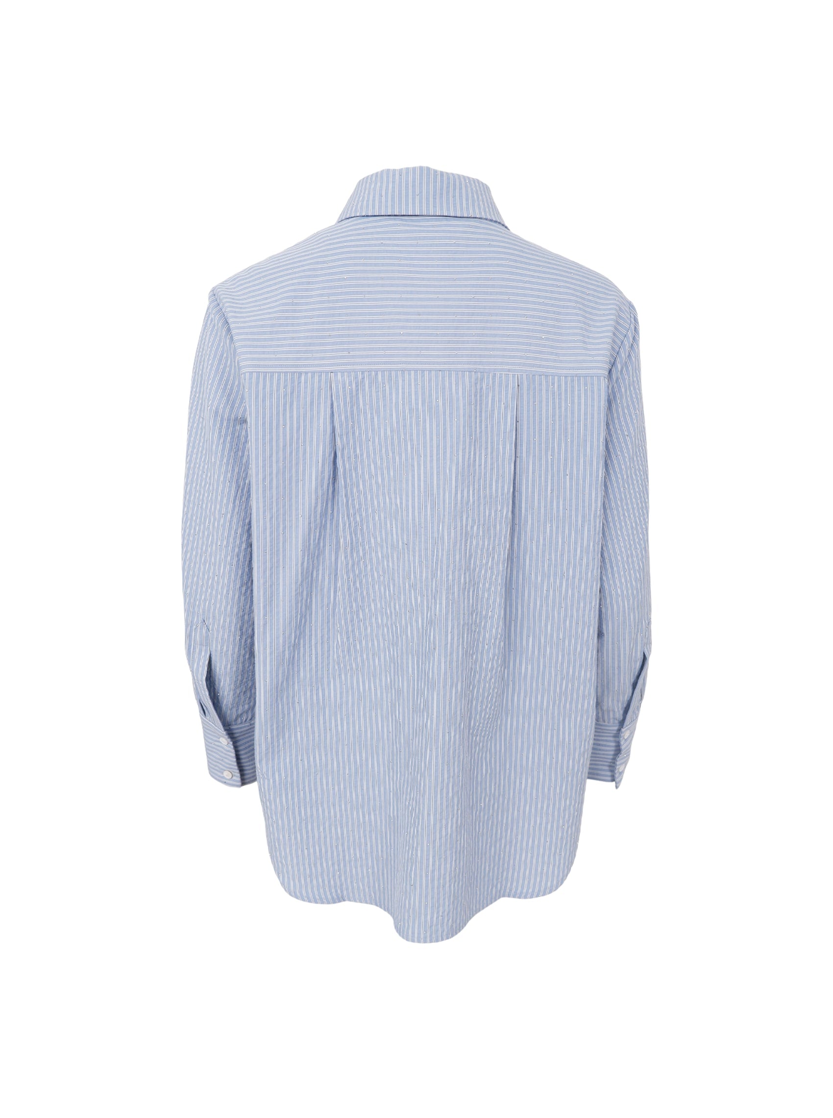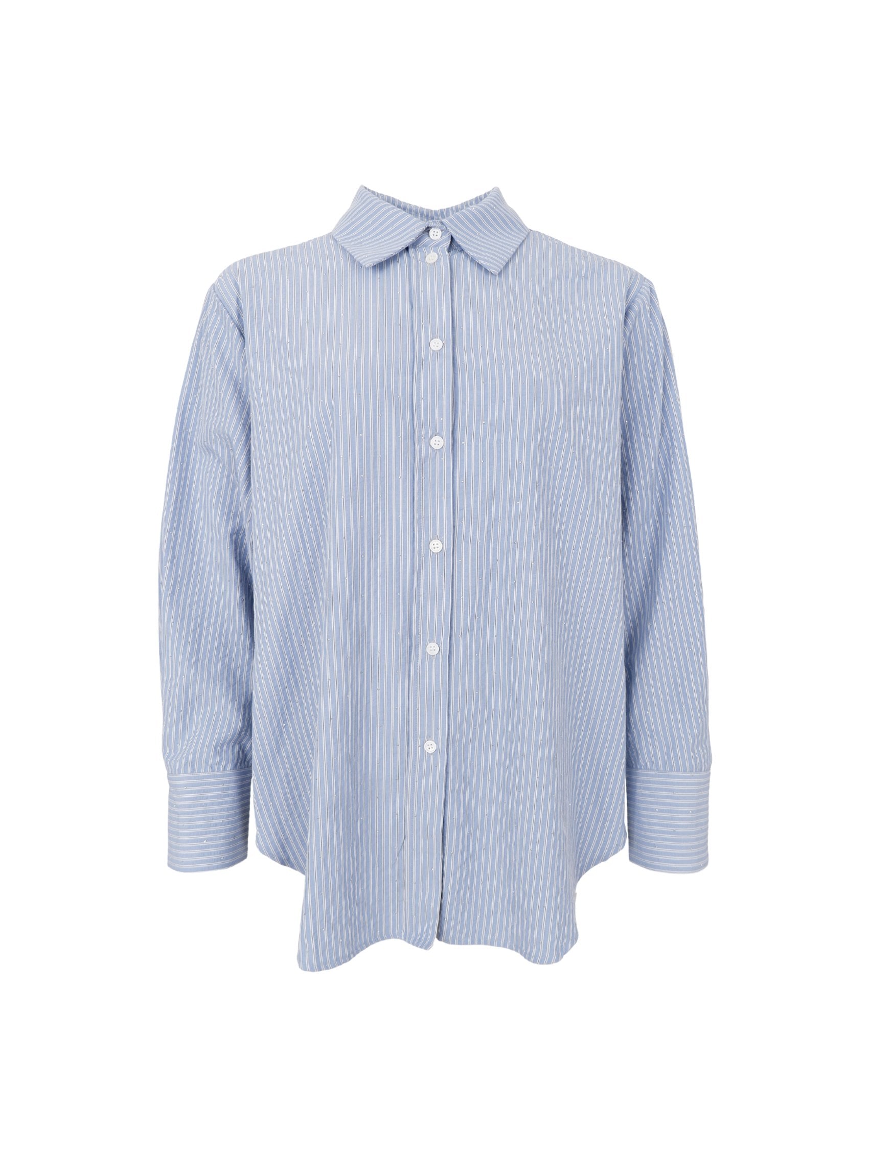 Das Starry-Shirt ist mit seinen vielen feinen Details und seinem modernen Ausdruck ein absolutes Must-have. Das Shirt ist ein übergroßes gestreiftes Seersucker-Shirt, das über und über mit feinsten kleinen Strasssteinen besetzt ist.
