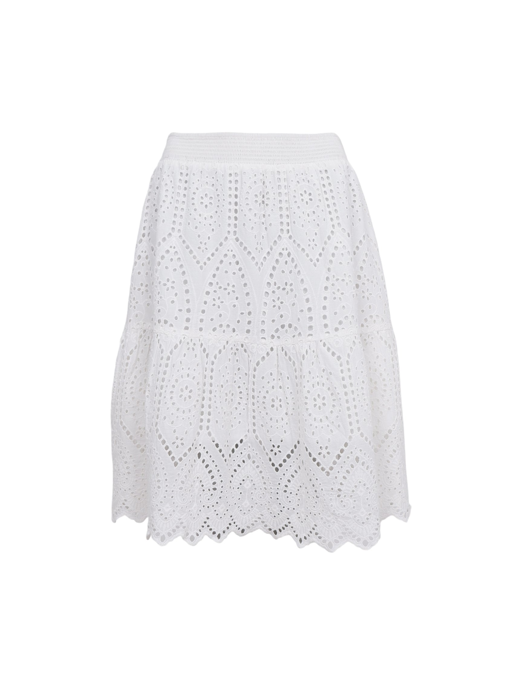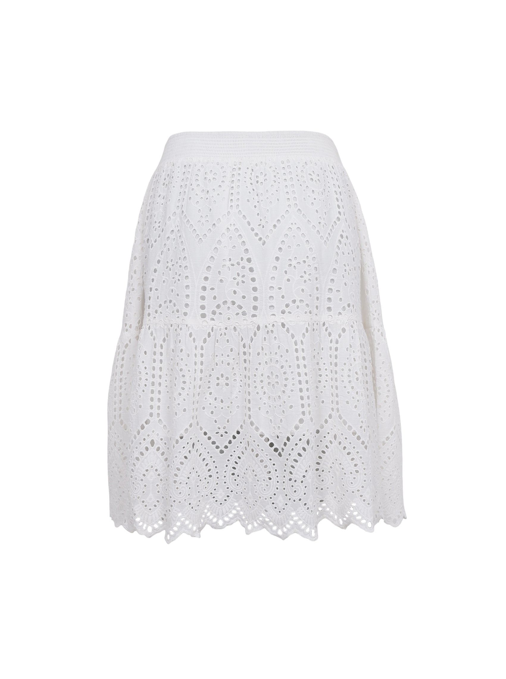 Unser Ella-Rock ist ein knielanger Rock mit Boho-inspirierter Lochstickerei und gesmoktem Bund für einen bequemen Sitz. Das Rüschendetail am Saum und der bestickte Saum verleihen ihm einen femininen Look. Tragen Sie ihn allein oder als Set mit dem passenden Ella-Oberteil.