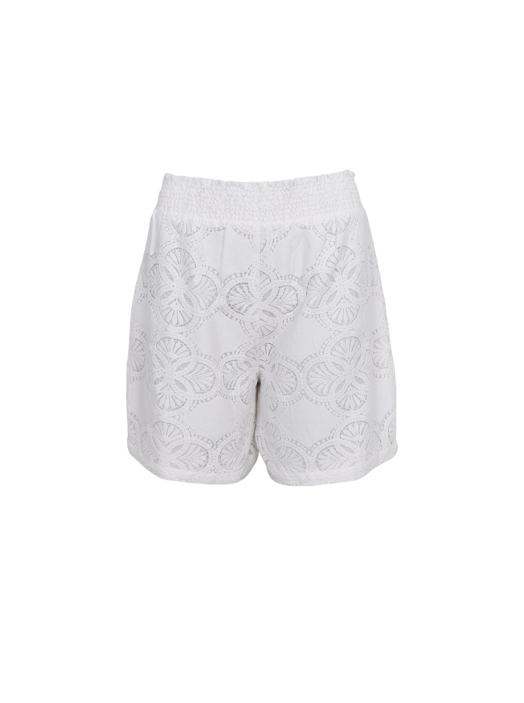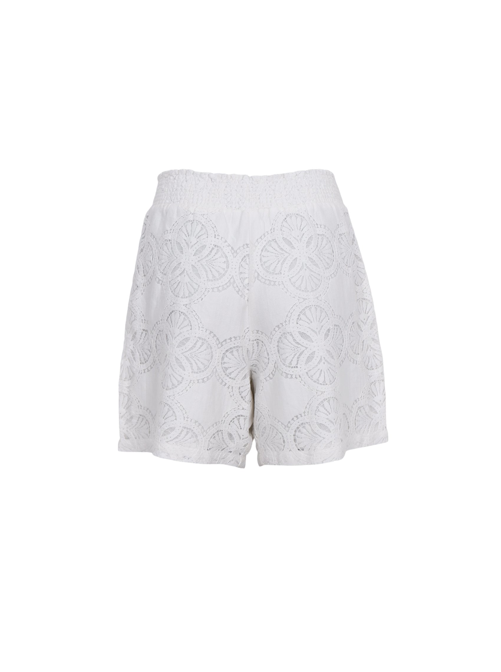 Unsere Milos Shorts sind feminine Shorts aus bestickter Spitze mit weichem Futter für hohen Tragekomfort. Der breite Gummizug in der Taille sorgt für eine flexible und schmeichelnde Passform. Ideal für lässige und sommerliche Looks. Kombinieren Sie sie solo oder mit der passenden Milos Spitzenbluse.