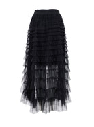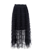 Der Angelina Rock ist ein romantischer und auffälliger Rock aus mehrlagigem Tüll mit feinen Rüschendetails, die viel Volumen und Bewegung erzeugen. Der breite, elastische Bund sorgt für eine bequeme Passform, während die transparente Außenschicht für einen femininen und modernen Look sorgt.