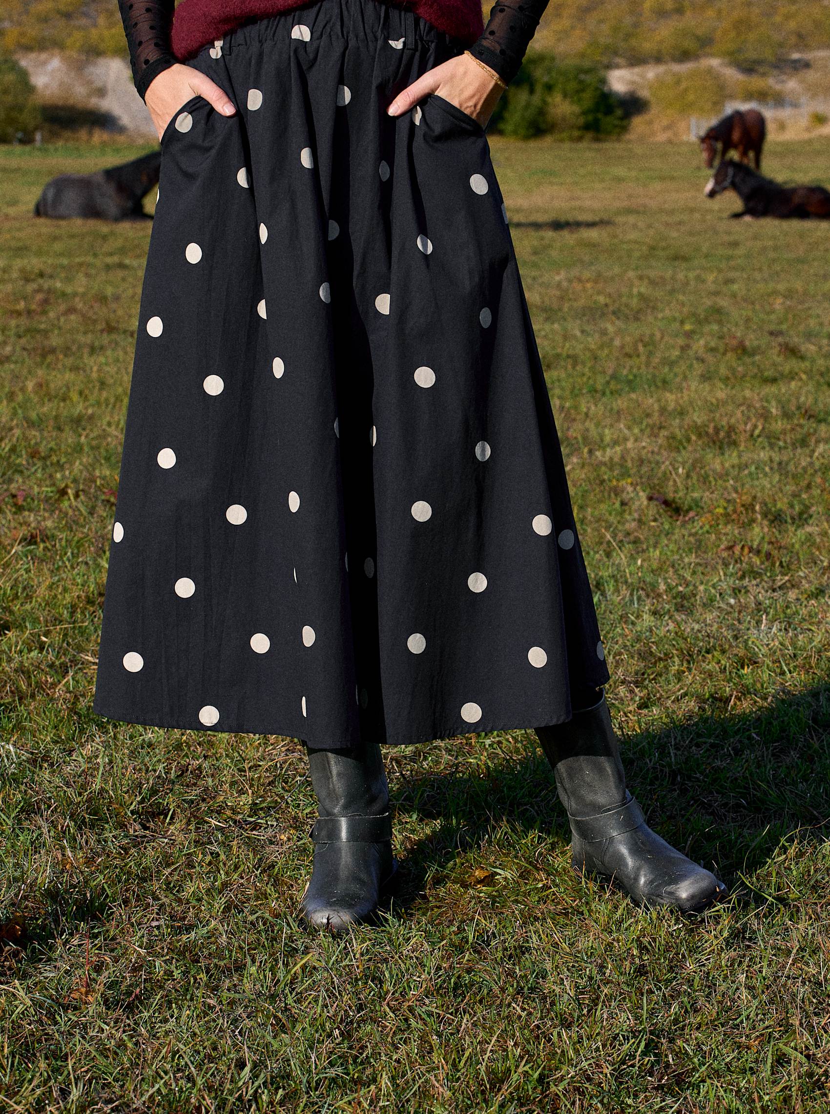 Unser Abbie-Rock ist ein wunderschöner A-förmiger Rock aus 100 % Baumwolle. Der Rock hat eine schöne Midi-Länge und einen Gummizug in der Taille, der für eine angenehme und bequeme Passform sorgt. Der Rock ist in modernen und stylischen Prints erhältlich und sorgt für ein cooles und trendiges Outfit.