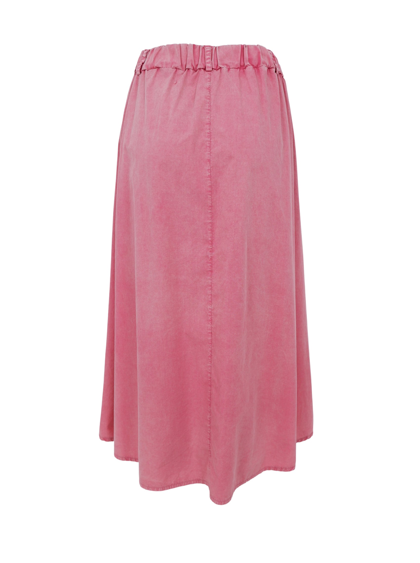 Aufgrund der speziellen Enzymwaschtechnik können die Farbtöne innerhalb des Kleidungsstücks und von Rock zu Rock variieren.