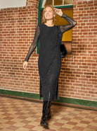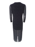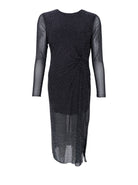 Elegantes Netzkleid mit kleinen Glitzerdetails. Das Kleid hat lange Ärmel, einen Rundhalsausschnitt und eine figurbetonte Passform mit seitlicher Drapierung, die für einen schmeichelnden Fall sorgt. Die leichte, transparente Qualität macht es ideal für festliche Anlässe, bei denen es mit einem Unterkleid oder Top und Rock darunter gestylt werden kann.